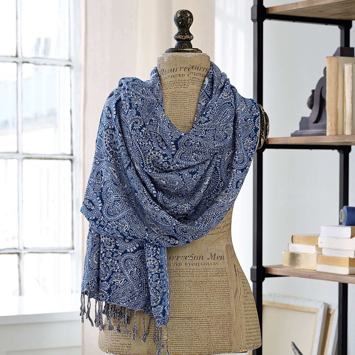 Das klassische Paisley-Muster im eleganten Blauton macht diesen Schal zu einem zuverlässigen Begleiter und zum Highlight eines jeden Outfits. Tragen Sie ihn bei Wind und Wetter, wärmend um den Hals oder zur sommerlichen Gartenparty als elegante Stola. Die Fransen an den kurzen Enden nehmen dem Tuch aus schmeichelnder Viskose-Qualität die Strenge – so krönen Sie jetzt auch jedes Jeans-Outfit absolut stilvoll.