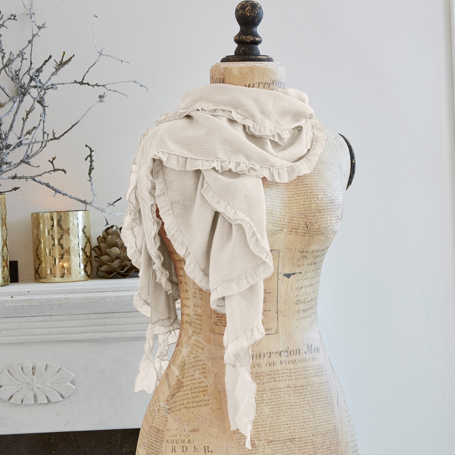 Mit diesem großzügigen Tuch beantwortet sich die Frage, wie man es am schönsten um Schulter und Hals drapieren kann, fast von selbst. Es präsentiert sich nämlich schon deshalb in einem lässigen Faltenwurf, weil es der Länge nach von einem Faden durchzogen ist, der für eine ganz natürlich wirkende Raffung sorgt. Das harmoniert super mit dem schmalen Rüschenrand, der den gesamten Schal schmückt. Das leichte Accessoire besteht übrigens zu 70 Prozent aus Viskose und zu 30 Prozent aus Baumwolle. Diese Kombination sorgt für einen ungemein leichten Tragekomfort, der den Schal zu einem Lieblingsstück macht, das während des ganzen Jahres zum unverzichtbaren Begleiter wird. Hinzu kommt noch, dass der schlichte Look dieses Stückes stilistisch ungemein flexibel ist. Um die Struktur des angenehmen Stoffes zu erhalten, empfehlen wir eine schonende Reinigung.