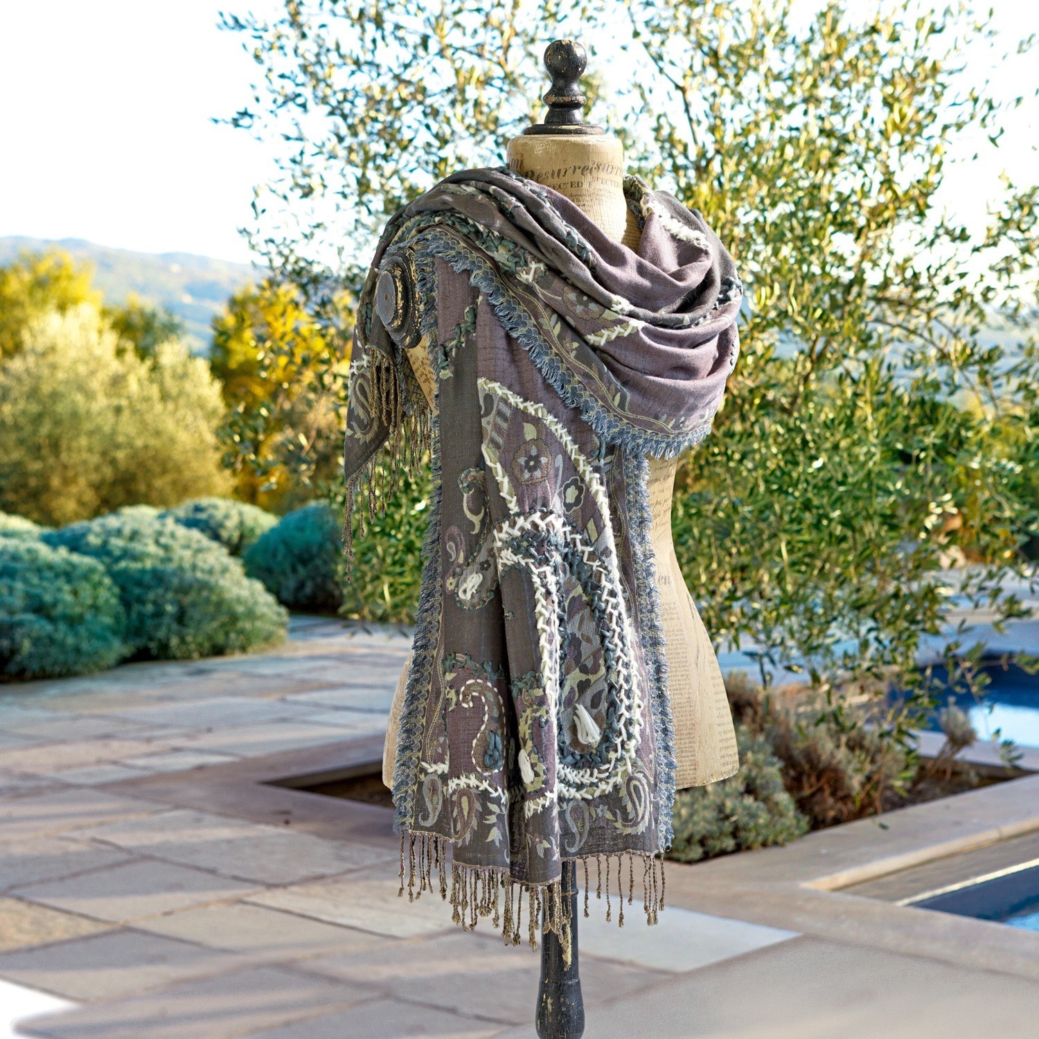 Der leichte Sommerschal punktet mit seiner anschmiegsamen Viskose-Qualität, der edlen, kombinationsstarken Farbgebung und einer handgestickten Stickerei im Paisley-Stil. So ist das federleichte Tuch sowohl als Schal als auch als Schultertuch zum Sommerkleid tragbar.