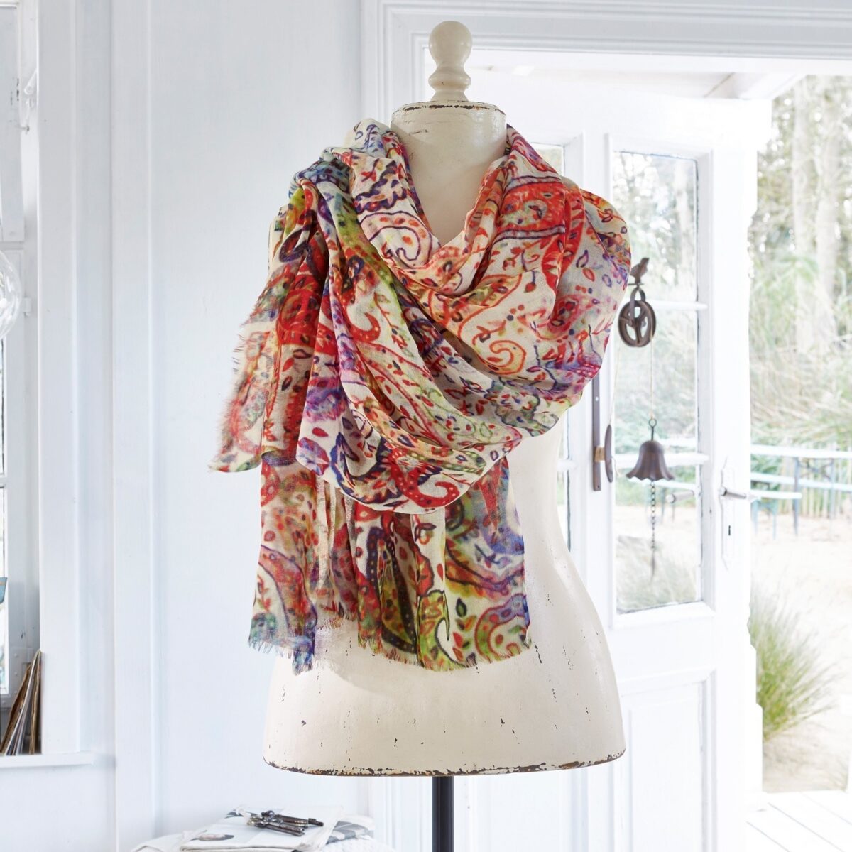 Aus reiner Wolle, die Wind und Wetter natürlich abweist. Mit farbenprächtigem und exotischem Paisley-Muster. Ein echtes Gute-Laune-Accessoire. Ein farbenfrohes und […]