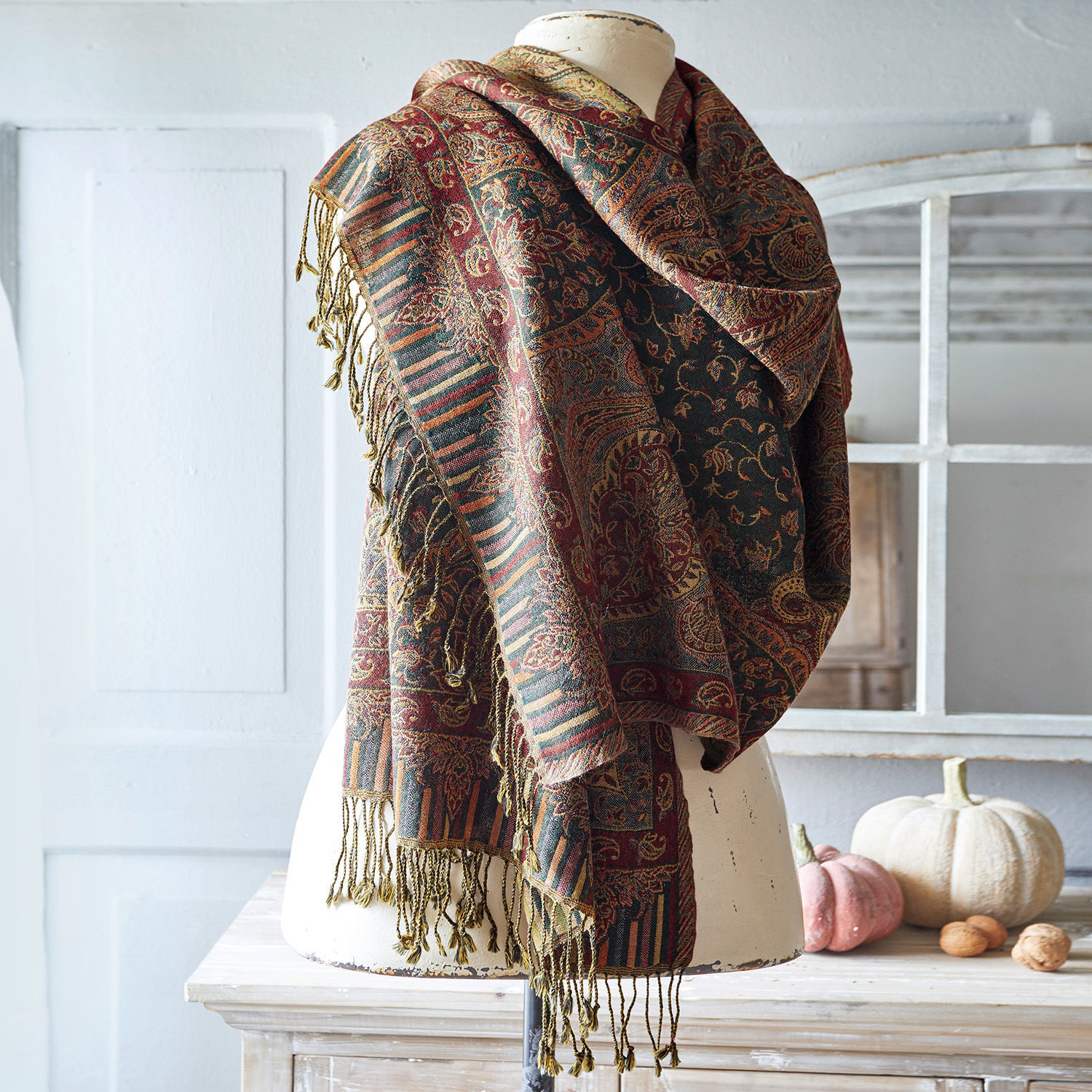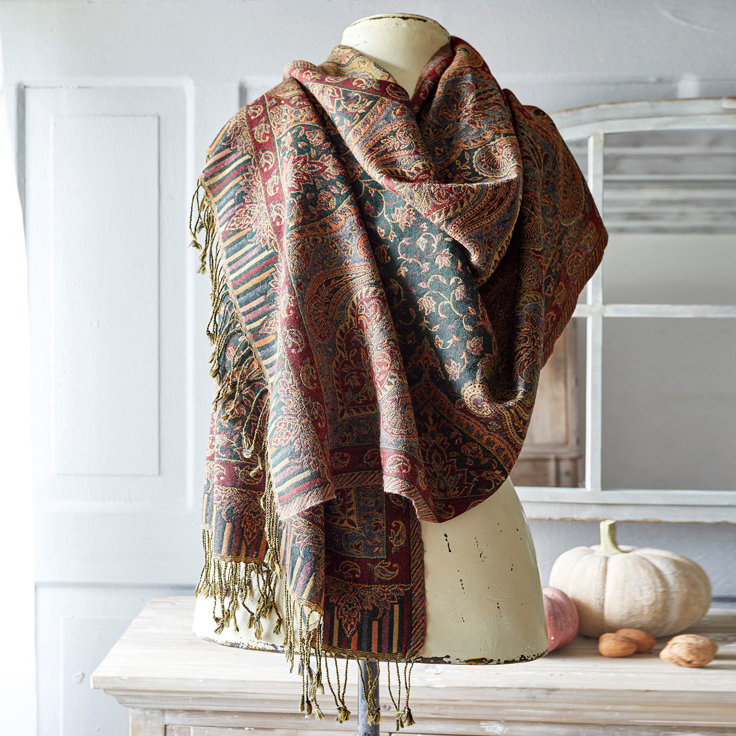 Mit diesem Schal sorgen Sie für ein vielfarbiges Highlight – und setzen damit visuelle Akzente, wo auch immer Sie ihn zeigen oder verwenden. Das farbenfrohe Paisley-Muster stammt ursprünglich aus Persien und fand seinen Weg über Indien in unsere Gefilde. Es begeistert durch seine unbekümmerte Verspieltheit und zugleich stilvolle Ästhetik, die mit dem Flair des Orients unsere Sinne verzaubert. Der wunderbar weiche Schal kann jederzeit für sich stehen. Doch ist er auch perfekt geeignet, wenn Sie nur farbige Akzente setzen wollen: Dann kombinieren Sie ihn am besten zu einfarbigen Stoffen – und erfreuen sich am kontrastreichen Zusammenspiel. Ob alleine oder in Kombination, durch sein einzigartiges Paisley-Muster wird der Schal stets ein Eyecatcher sein.