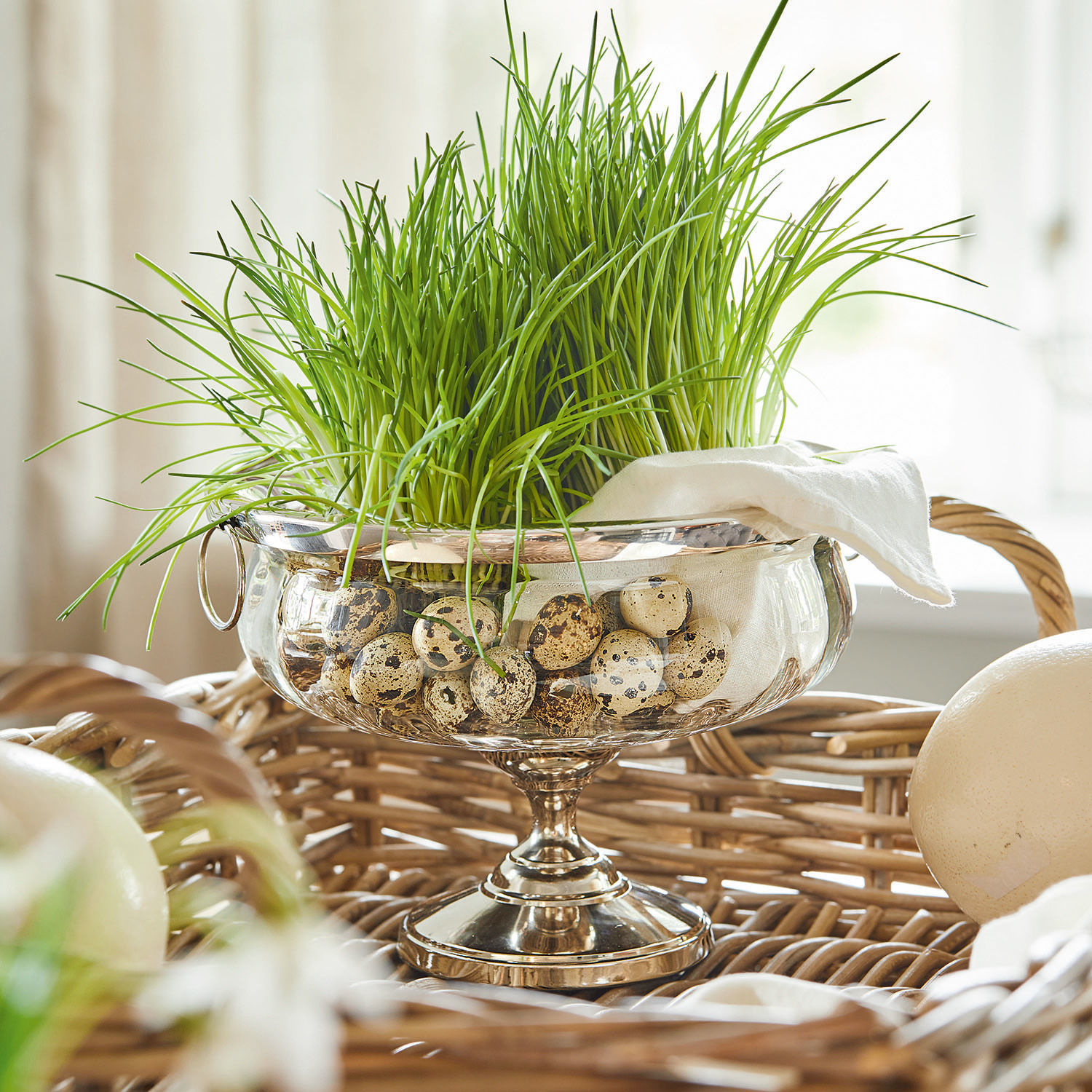 Der Pokal stand Pate für diese wunderbare Schale, die durch ihre gelungene Kombination aus verschiedenen Materialien glänzt. In Stil und Formensprache übt sie sich in Zurückhaltung und beweist höchste Eleganz. Der gerundete Korpus ist aus hochwertigem Klarglas gearbeitet, während der obere Abschluss und der runde Standfuss aus silberfarbenem Metall brillieren. Zwei seitlich angebrachte Zierringe sind stilsichere Extras und runden das Gesamtbild ab. Ästhetik und Funktion bilden hier eine perfekte Einheit: So lässt sich die Glasschale stimmungsvoll mit Schwimmkerzen oder saisonalen Schätzen aus der Natur dekorieren. Außerdem bietet sie ausreichend Platz, um frisches Obst in Szene zu setzen. Und Ihren Gästen können Sie damit auch stilsicher Ihre selbstgebackenen Kekse präsentieren. Ein äußerst vielseitiges Accessoire, das sich für jede Gelegenheit anbietet und mit jedem Interieur verträgt.