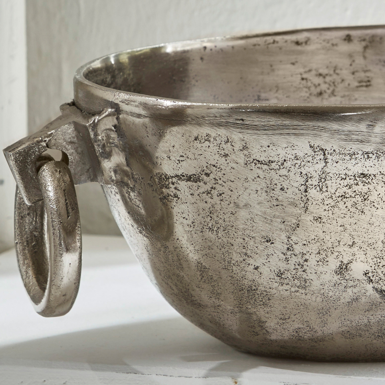 Diese hochwertige und recht handliche Schale hat einen edlen nostalgischen Charakter. Sie besteht aus Aluminium im Antiksilber-Look, was ihr den Charme früherer Zeiten verleiht. Das elegante Design hat zwei ebenso hübsche wie nützliche seitliche Henkel, an denen es sich leicht umstellen lässt. Die Schale lässt sich vielseitig nutzen – vielleicht mit einem duftenden Potpourri, Zweigen oder Blüten befüllt oder auch für Obst und Gemüse. Auch kleine Gegenstände wie Schmuck oder Seifen lassen sich gut darin verwahren. Dekorieren Sie sie ganz nach Lust und Laune. Zum Shabby-Chic wirkt sie besonders gut.