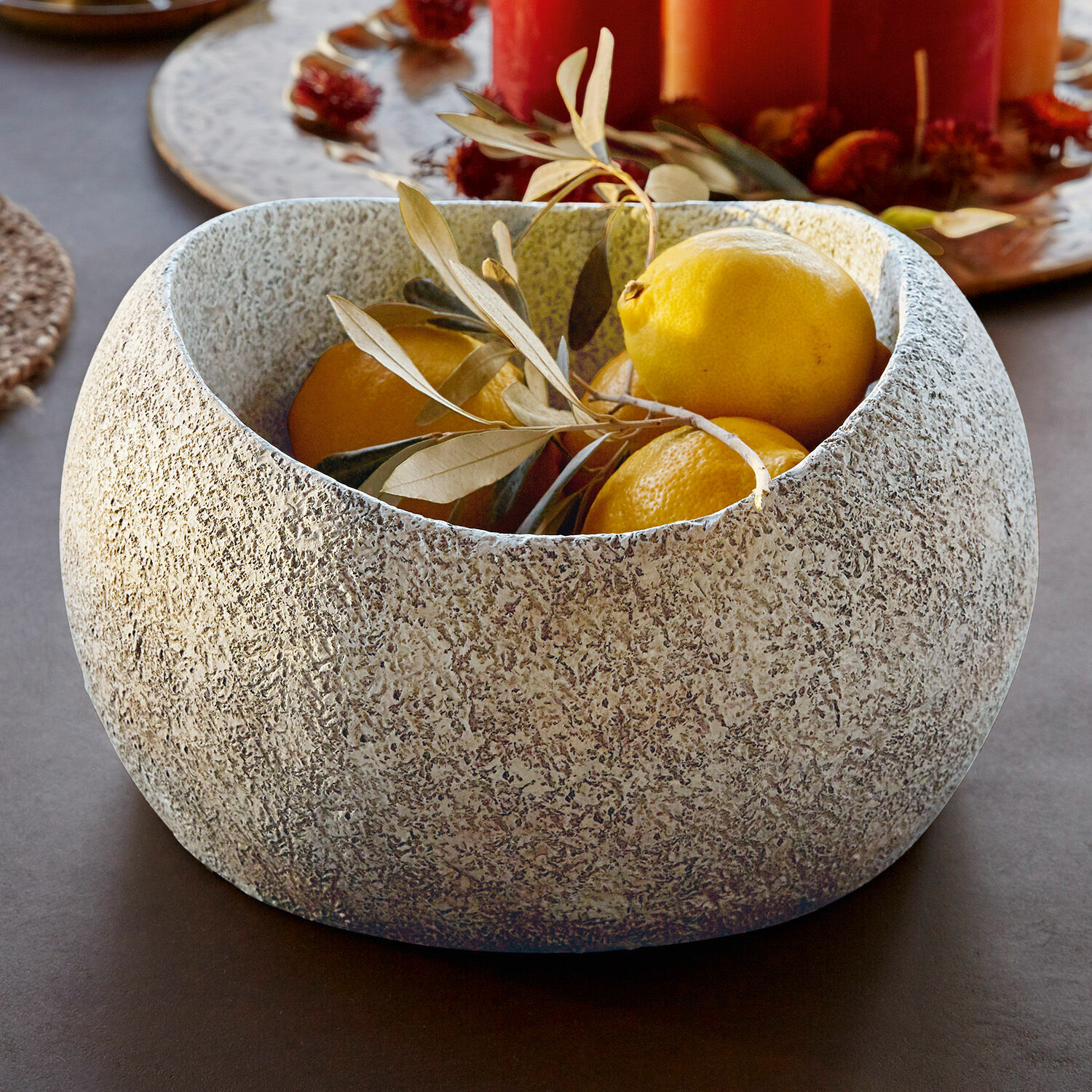Erleben Sie ein ästhetisches und sehr formschönes Design in edler Stein-Optik, das sich für vielerlei Dekorationen anbietet. Die elegante Schale besteht aus Polyresin und ist ganz zeitlos. So passt sie gut zu vielen Wohnstilen und lässt sich kreativ befüllen und dekorieren, vielleicht mit Blüten, Muscheln oder kleinen Windlichtern darin. Auch zum Aufbewahren von modischen Accessoires wie Schmuck oder Make-up-Artikeln eignet sie sich. Diese stilvolle Schale erscheint massiv, ist aber recht leicht. Im Winter sollte sie im Innenbereich verwendet werden. Und, wie nutzen Sie das hübsche Stück?