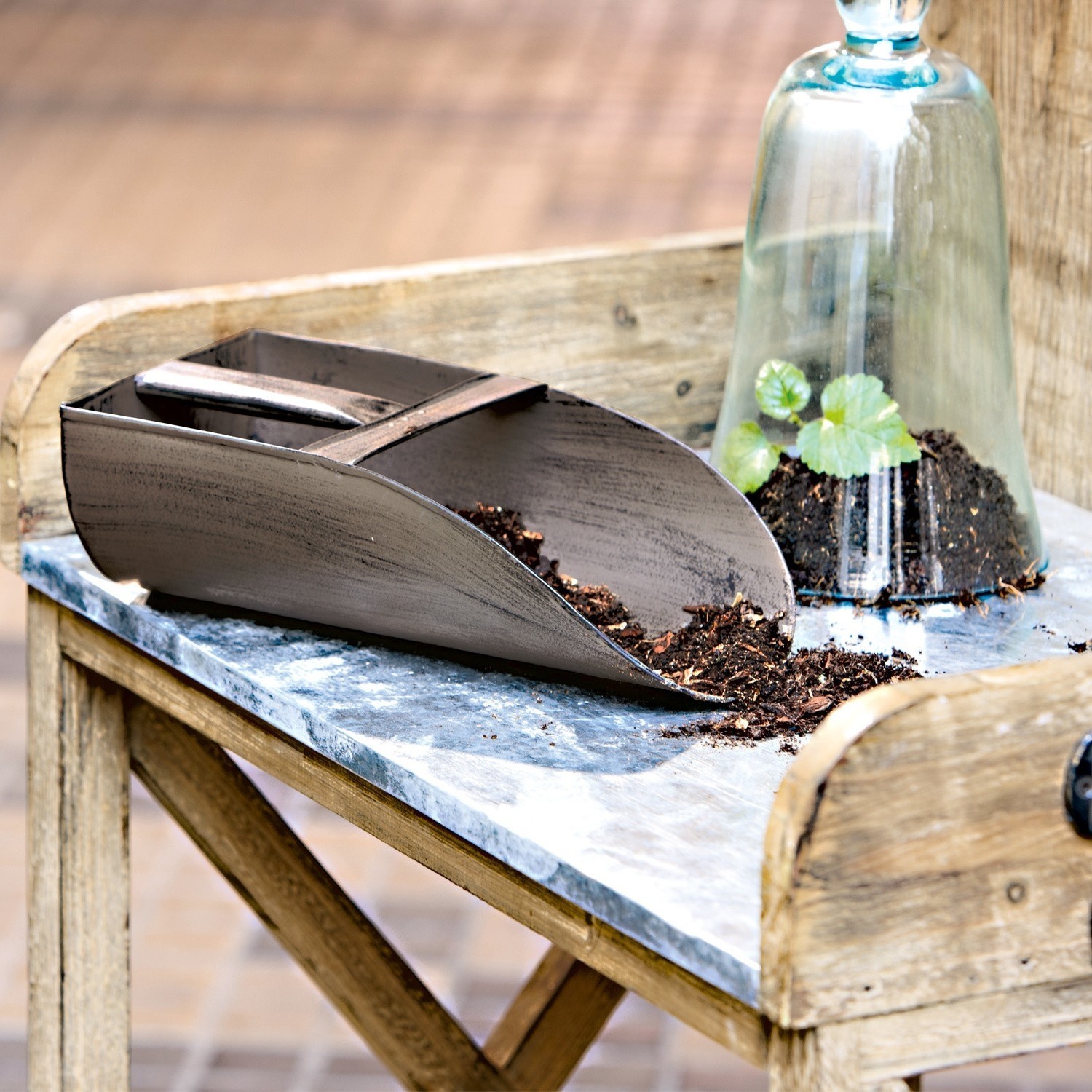 Eine Schaufel sollte handlich und für die anfallende Gartenarbeit geeignet sein. Pluspunkt für unsere Schaufel, denn sie erfüllt genau diese Anforderungen. Diese Schaufel aus rostbraunem Eisen ist zudem auch noch ergonomisch durchdacht. Durch den in der Schaufel integrierten Griff können Sie ab sofort ganz ohne Kraftaufwand schaufeln. Und das ist nicht alles. Mit dem handlichen Gartengerät kann ganz einfach Erde aus einem Sack weiter in Kübeln, Pflanzenkästen und Beeten verteilt werden. Ein weiterer Vorteil: diese Schaufel ist äußerst platzsparend und kann während einer kleinen Gartenpause, problemlos in einem Eimer oder gar in einer Tasche der Arbeitskleidung verschwinden – bis sie zu ihrem nächsten Einsatz gerufen wird.