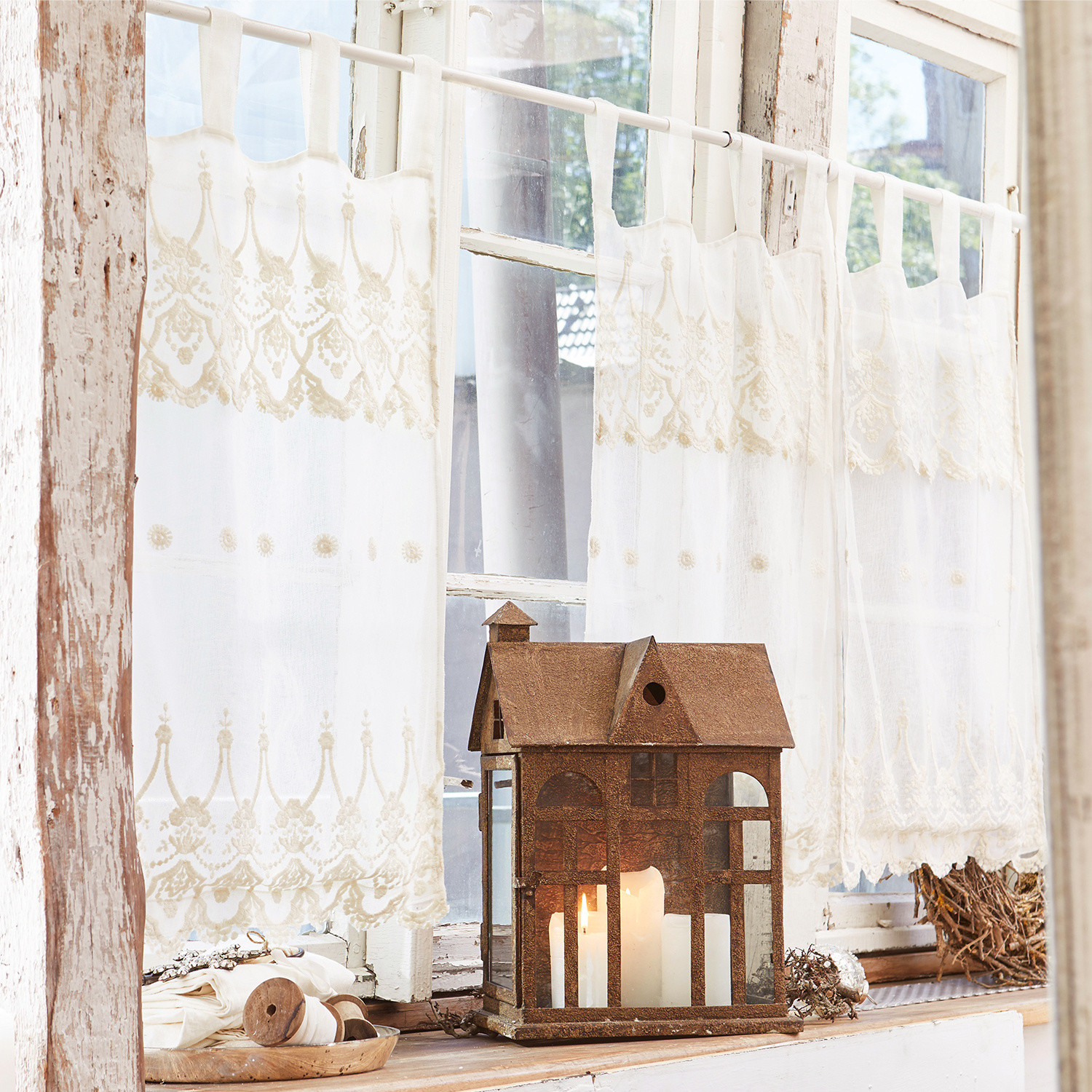 Holen Sie sich eine Prise Romantik mit einem Hauch Shabby-Flair nach Hause. Dieses kleine Schmuckstückchen eignet sich dafür perfekt. Das zarte, transparente Gewebe aus natürlicher reiner Baumwolle ziert eine opulente Stickerei. Sie ist wirklich wunderhübsch und sehr aufwendig gearbeitet und dürfte alle, die es romantisch mögen, sofort bezaubern. Genießen Sie diesen stilvollen Akzent und einen leichten Sichtschutz für kleine Fenster. Praktische Schlaufen machen die Anbringung an einer Gardinenstange unkompliziert und ganz einfach. In jeder Saison ein sehr gekonnter Akzent mit nostalgischem Charakter.