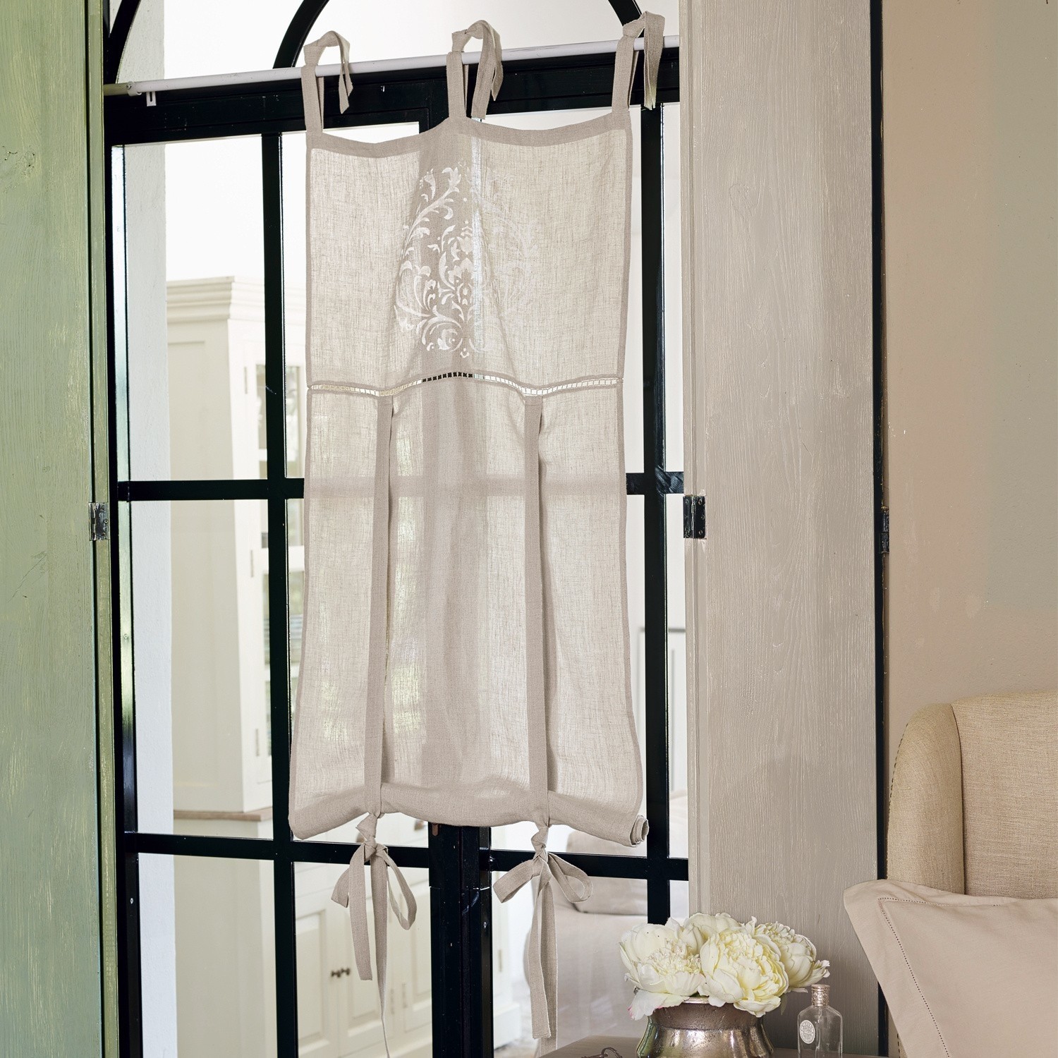 Die naturfarbene Scheibengardine aus reinem Leinen wird im Handumdrehen zu einem individuellen Accessoire in Ihren vier Wänden: Der ornamentale Druck im Vintage-Stil unterstreicht den charmant-verspielten Look des hochwertig gewebten Stoffes. Praktische Details sind die Bindebänder oben und die längs verlaufenden Bänder zum problemlosen Raffen der Scheibengardine.