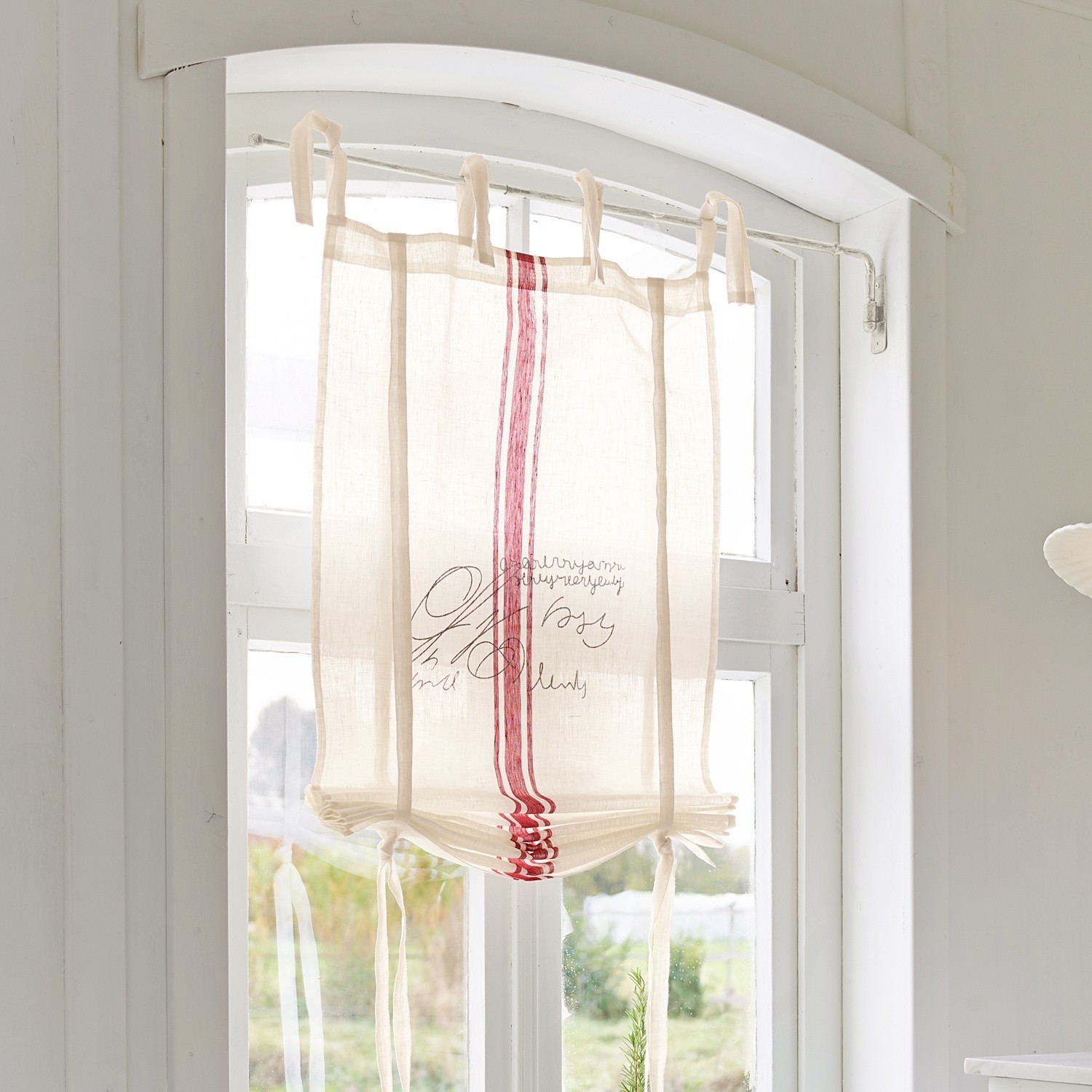 Eine Gardine wie diese eignet sich ganz wunderbar, um dem Look & Feel eines Raumes den letzten Schliff zu verleihen.Textile Accessoires verleihen einem Zuhause Wärme und sorgen erst für ein wahrhaft gemütliches Ambiente. Die naturfarbene Gardine aus reinem Leinen schmückt Ihr Fenster im charmanten Landhaus-Stil, rote Zierstreifen sowie ein origineller Schriftendruck sorgen für eine Extraportion Individualität. Schön als dekorativer Sichtschutz in der Küche oder im hell eingerichteten Wohn- oder Schlafzimmer. Ein weiterer Vorteil: Sie sperren neugierige Blicke von außen gekonnt aus – gestatten ihren Nachbarn stattdessen aber den Blick auf ein zauberhaftes Stöffchen im Vintage-Look.