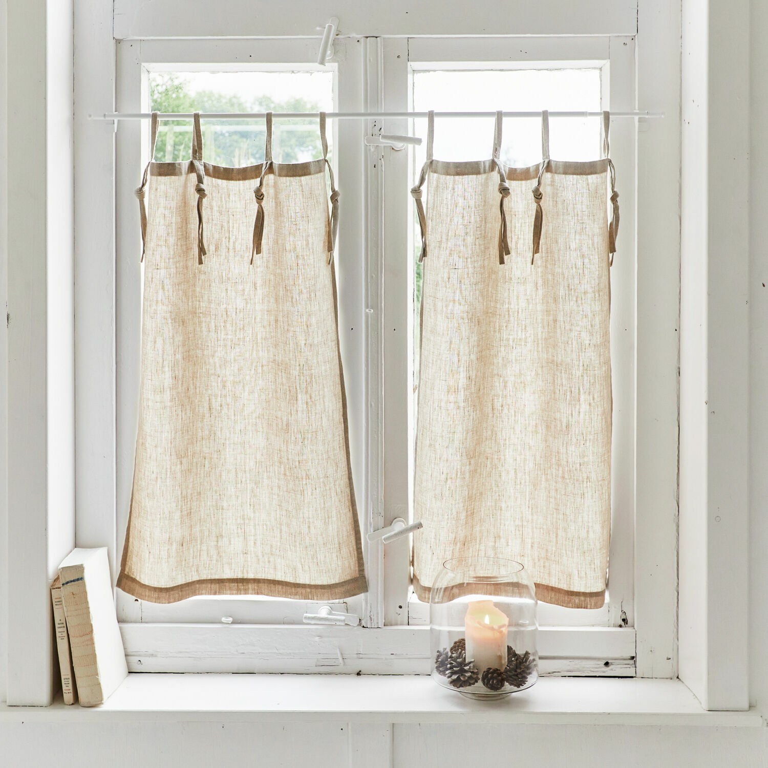 Leinen ist eine der schönsten Launen der Natur: Es zeichnet sich durch eine typische, unregelmäßige Struktur mit kleinen Fadenverdickungen aus, hat einen geschmeidigen Fall und eine edle Melange-Optik. Diese edle Scheibengardine in schlichtem Design bringt das Naturgewebe besonders schön zur Geltung – und macht kleine Fenster beispielsweise im Bad oder Flur zum stilvollen Blickfang. Dicht gewebt schützt sie dabei nicht nur vor neugierigen Blicken, sondern auch vor starker Sonneneinstrahlung. Die kreative Schlaufenlösung mit dekorativem Zierknoten verleiht dem Textil die besondere Note und macht die Aufhängung an die Vorhangstange zum Kinderspiel. Zugleich ermöglichen lange Bindebänder eine individuelle Höhe. Lassen Sie sich auch von der Anpassungsfähigkeit dieser Leinengardine beeindrucken. Denn die zeitlose Farbgebung unterstreicht die natürliche Schönheit der Gardine perfekt und fügt sich in jedes Interieur harmonisch ein.
