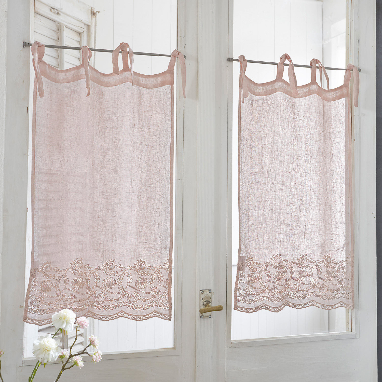 Liebhaber romantischer Details werden sich in dieses schmucke Stück verlieben. Besonders hervorzuheben ist die liebevolle Stickerei im unteren Drittel. Diese verbreitet ihren nostalgischen Charme und gibt dem hochwertigen aber schlichten Accessoire eine romantische Note. Der reine Leinenstoff sorgt für ein herrlich natürliches Ambiente. Die süßen Bänder ermöglichen einfaches Anbringen an einer Gardinenstange. Luftig, leicht und mit wunderschönen Details versehen ist dieses Modell ein unwiderstehlicher Schmuck für kleinere Fenster.