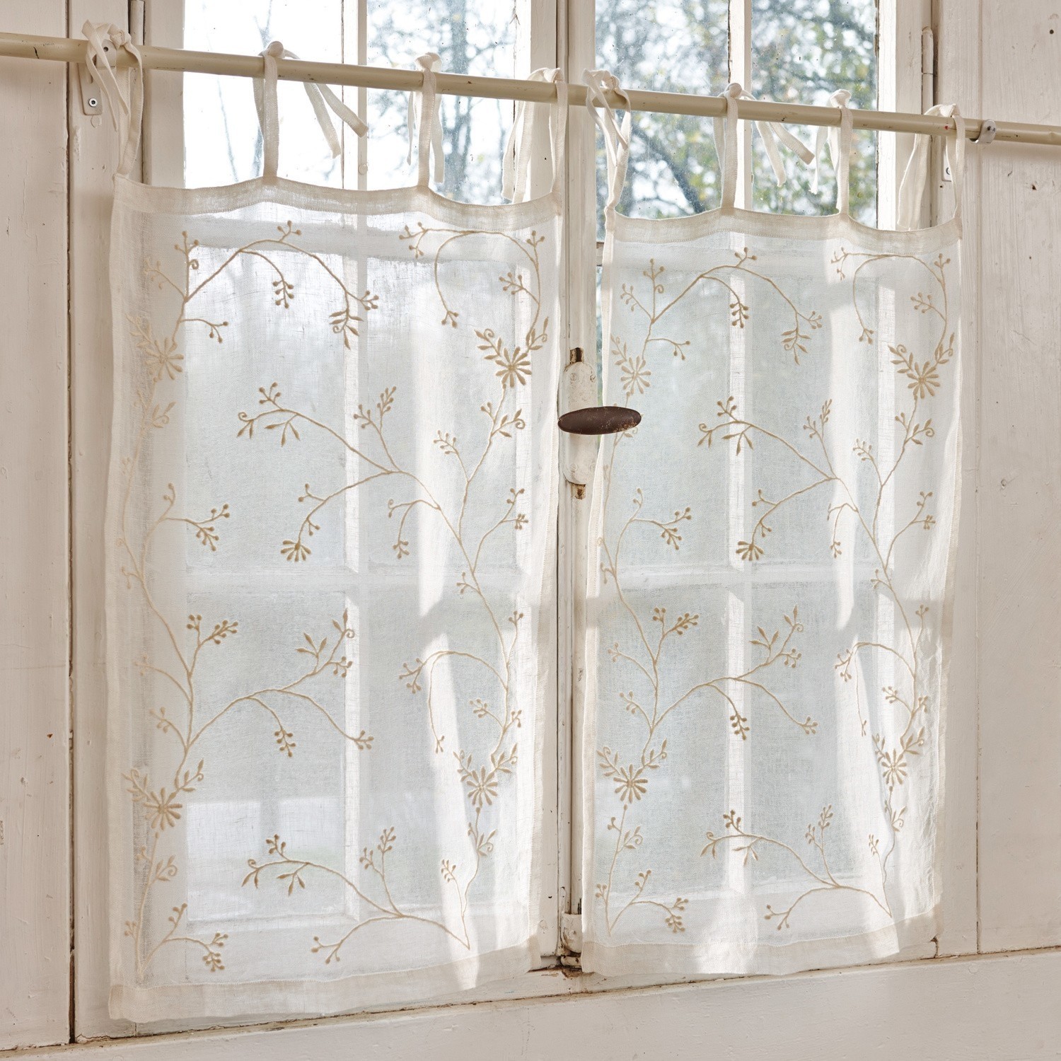 Die schmal geschnittene Scheibengardine aus reinem Leinen überzeugt mit einer floralen Ton-in-Ton-Stickerei sowie mit einer hochwertigen Verarbeitung. Der praktische Sichtschutz, der klassischerweise in der Küche zu finden ist, wird so zu einem charmanten Fensterschmuck, der jedem Zuhause eine Extraportion Gemütlichkeit und Individualität verleiht. Das Besondere: Die Bindebänder lassen sich ganz einfach um jede Gardinenstange binden und unterstreichen zudem den romantischen Look.
