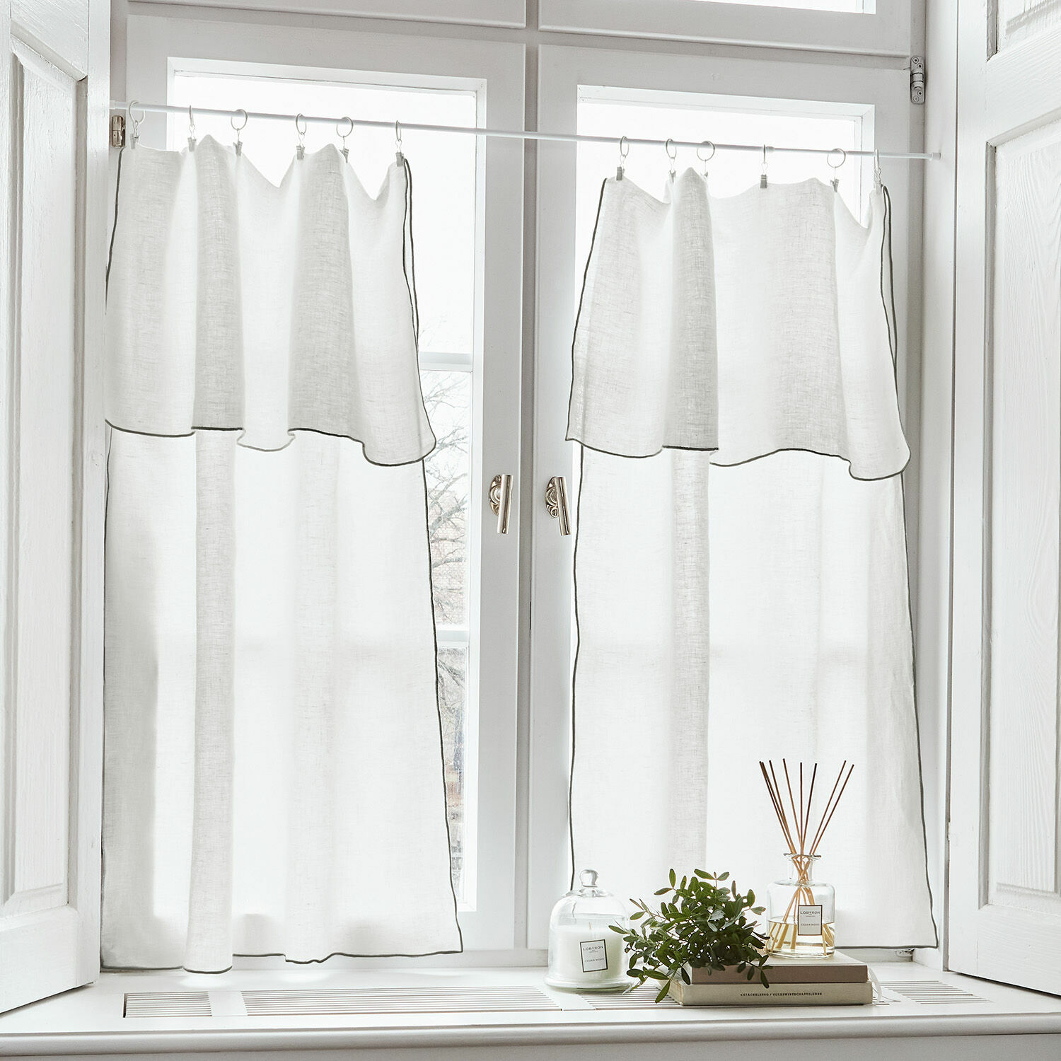 Sie ist so duftig leicht, dass eine milde Sommerbrise sie in Bewegung setzen kann und auch das Licht nur sanft gefiltert wird, so dass im Raum eine freundlich beschwingte Stimmung entsteht – diese Scheibengardine bildet nur eine ganz feine Grenze zwischen drinnen und draußen, was ihr den besonderen Reiz verleiht. Gardinen wie diese haben eine lange Tradition im klassischen Landhaus-Stil und auch heute sieht man sie in Frankreich noch an vielen Fenstern. Denn das luftige Leinengewebe wirkt nostalgisch und edel zugleich, gerade wenn es sich so schlicht präsentiert wie bei dieser Scheibengardine. Für die romantische Note sorgt die Art der Aufhängung, denn hier dürfen Sie selbst kreativ werden. Mit praktischen Clips (exkl.) und dazugehörenden Gardinen-Ringen können Sie die Gardine je nach Fenstergröße und persönlichem Geschmack glatter oder mit lockeren Falten aufhängen. Oder sie je nach Fensterhöhe um einen bezaubernden Volant bereichern. Tipp: Bestellen Sie die passenden Clips und Gardinenringe gleich mit, dann kann die Scheibengardine bald eines Ihrer Fenster schmücken und dabei auch gleich lästige Blicke von außen fernhalten.