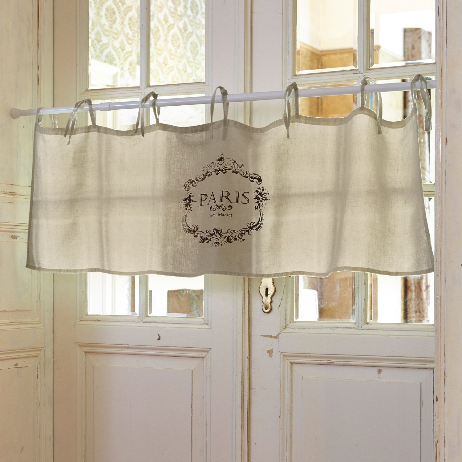 Langlebig und blickdicht ist diese fein gewebte Scheibengardine mit französischem Flair. Geschmackvolle Bindebänder machen das Anbringen zum Kinderspiel. Der kunstvoll verzierte Text-Print ist ein weiteres Plus und unterstreicht das zeitlos elegante Design. Die Gardine ist aus reinem Leinen gewebt und lichtdurchlässig, doch ihr Heim wird dennoch zuverlässig vor neugierigen Blicken abgeschirmt.