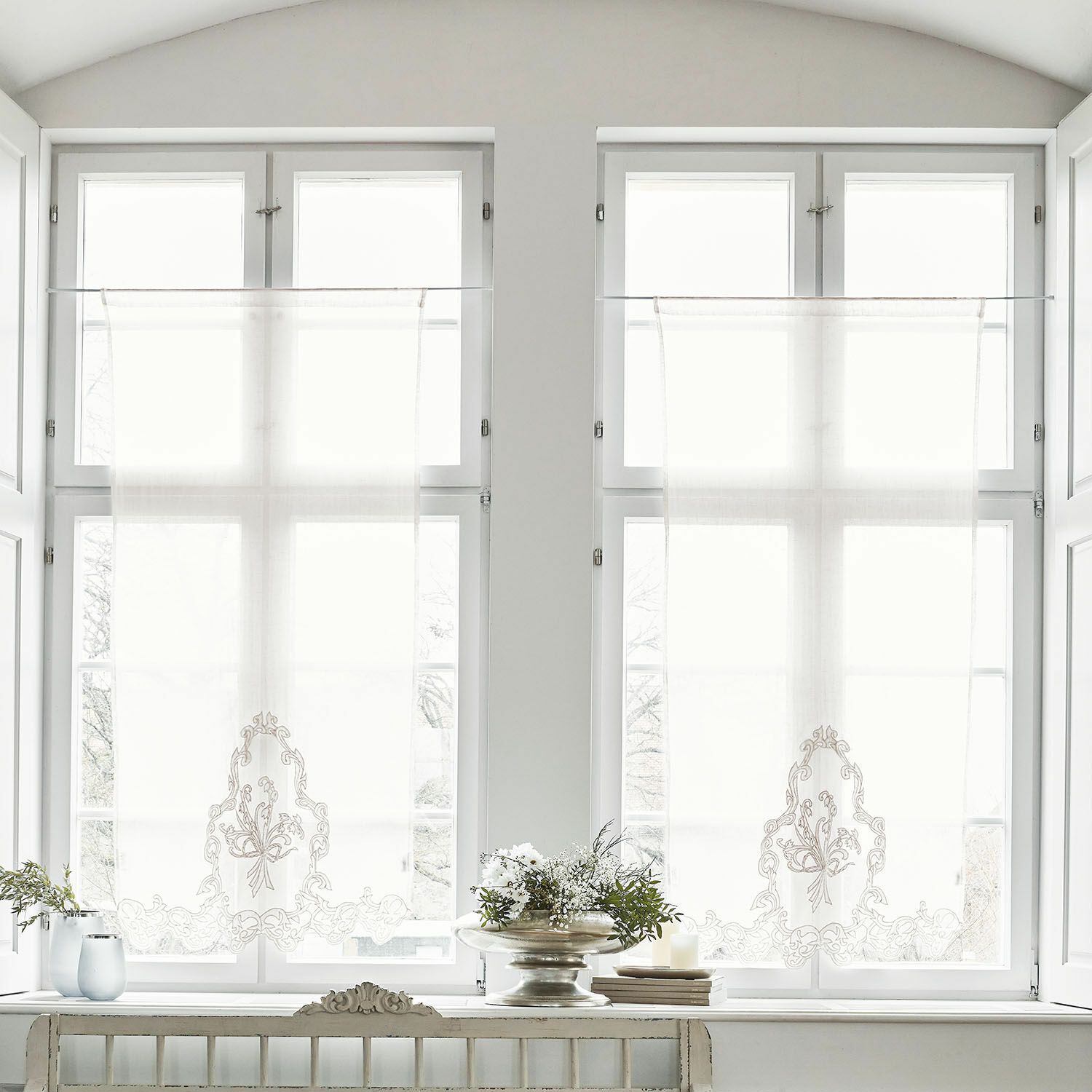 Neu interpretiert und im modischen Gewand feiern Gardinen in unterschiedlichen Aufmachungen derzeit ihr Comeback in der Wohnraumgestaltung. Die Scheibengardine springt eindeutig auf diesen Trend auf und gewinnt besonders beim Landhaus-Stil wieder mehr und mehr an Terrain. Kein Wunder, wenn sie sich so romantisch wie diese cremefarbene und duftig gewebte Leinengardine präsentiert. Ein optisches Highlight bildet dabei durchaus die romantische und durchaus üppige Baumwollstickerei am unteren Abschluss des feinen Stoffes. Mit diesem Stickerei-Ornament wird Ihr Fenster ganz von alleine zum eigentlichen Blickfang! Durch einen praktischen Tunnelzug lässt sich die Gardine an jeder Gardinenstange leicht befestigen.