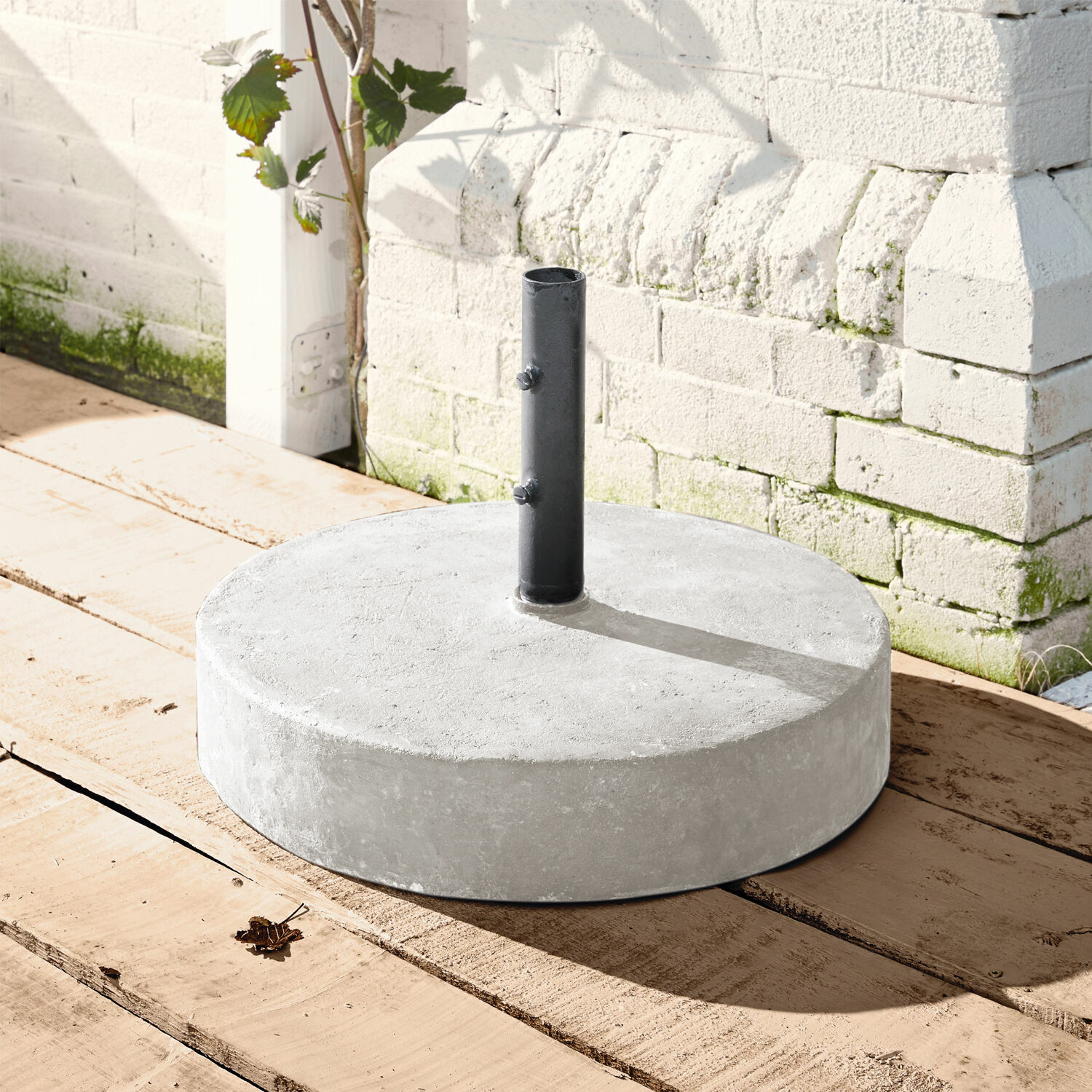 Der schwere und wetterfeste Schirmständer ist aus massivem Steinguss gefertigt, der durch nichts aus dem Gleichgewicht gebracht werden kann. Das Material zeichnet sich durch eine sehr hohe Witterungsbeständigkeit und Langlebigkeit aus, sodass Sie sich über Jahrzehnte an diesem hochwertigen Produkt erfreuen können. Das Design wirkt im Gegensatz zu vielen Konkurrenzprodukten auf dem Markt sehr elegant, trotz seines hohen Gewichts von etwa 37 kg! Besonders praktisch: Der Ständer verfügt über eine robuste Metallhülse mit Befestigungsschrauben, die sich an verschiedene Stockdurchmesser anpassen und jeden Schirm fest und sicher verankern.