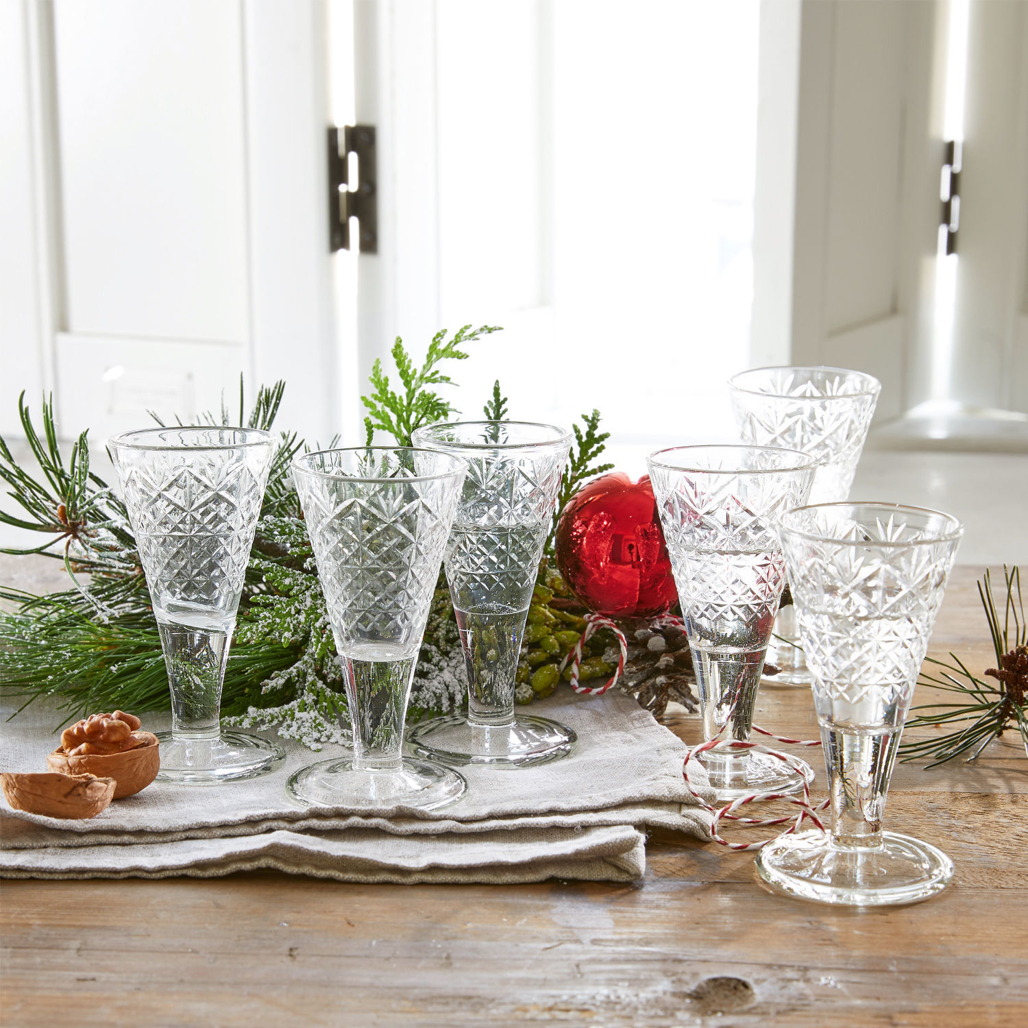 Ein Klassiker im edlen Gewand. Diese sechs wunderhübschen Schnapsgläschen sind mundgeblasen und durch ein besonderes Reinigungsverfahren von besonders reinem Glas. Ein feiner Facetten-Schliff ziert sie. Die filigranen Schmuckstücke erinnern an geerbte Gläser aus früheren Zeiten und machen sich sehr gut zu einem Ambiente im Shabby-Chic. Hiermit stoßen Sie stilvoll an und haben zu besonderen Anlässen immer das richtige Glas parat. Ob Familienfeier oder Geburtstag – hiermit zelebrieren Sie geschmackvoll den Moment. Die Qualität ist sehr hoch und das Design zeitlos. Sie lassen sich problemlos in der Spülmaschine reinigen. Wer möchte, könnte die gläsernen Schätze auch rein dekorativ nutzen und vielleicht mit Mini-Blüten bestücken oder kleine Dinge darin aufbewahren.