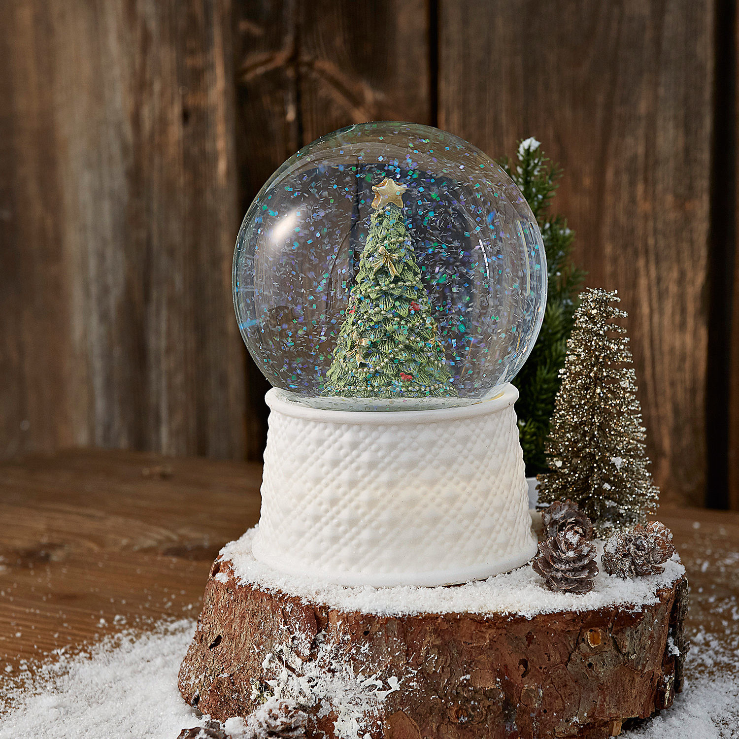 Weihnachtlicher Vintage-Zauber mit klassischer Note – diese wunderhübsche Schneekugel erinnert an vergangene Zeiten und bringt die besondere Schönheit der Festtage in Ihr Zuhause. Das reizende Design erfreut mit fröhlichem Schneetreiben, sobald es geschüttelt wird. Zudem ist die Kugel stimmungsvoll beleuchtet. Das Innenleben ist sehr detailverliebt und kunstvoll gestaltet mit einem Weihnachtsbaum aus bemaltem Kunststein. Auch der Fuß aus zartem Porzellan ist mit einem feinen Muster überzogen. Träumen Sie sich hiermit in eine verschneite Idylle und erleben Sie ein Vergnügen wie früher in Kindertagen. Ein wundervolles Accessoire zum Shabby-Chic, das gern ein Plätzchen auf der Fensterbank, dem Tisch oder im Regal einnimmt. Für Klein und Groß ist das romantische Design einfach eine wahre Freude, und das jedes Jahr aufs Neue.