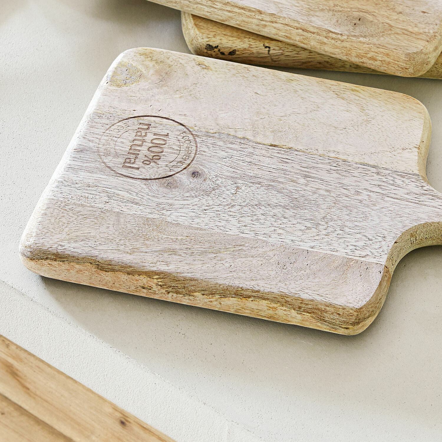 Schon in vergangenen Zeiten war das Holz-Schneidebrett ein praktischer Küchenhelfer – und ist heute für den modernen, nachhaltig bestimmten Lifestyle gefragter denn je. Diese hochwertigen Holzbretter setzen nicht nur äußerst dekorative Akzente in Ihrer Küche, sie leisten vor allem beim Kochen und Anrichten nützliche Dienste. Aus massivem Mangoholz gefertigt, zeigen sie sich in schlichter Schönheit, was die natürliche Maserung des Materials wunderbar zum Ausdruck bringt. Der formschöne Griff ist mit einer robusten Aufhängeschlaufe aus Leder versehen und trägt zur komfortablen Handhabung bei. Das 3er Set besteht aus drei unterschiedlichen Größen, die zusammen eine perfekte Einheit bilden und zugleich viel Flair und Natürlichkeit in Ihr Wohnambiente bringen. Entdecken Sie diese drei Multitalente auch für Ihr Zuhause – beim Sonntagsbrunch lassen sich Baguette und Co. wunderbar darauf schneiden. Auch als Basis für geschmackvoll angerichtete Käse- und Wurstplatten eignen sich die Küchenaccessoires ideal.