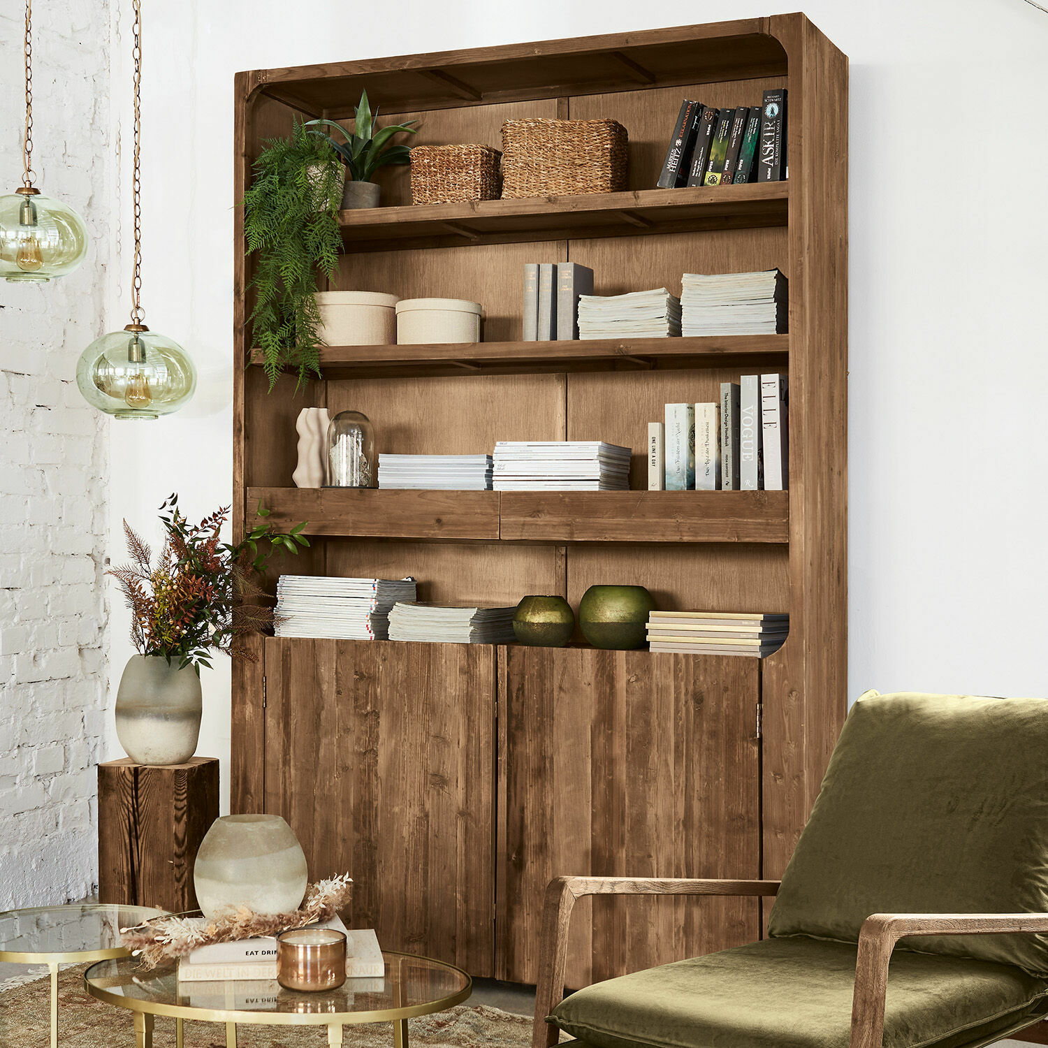 Früher standen Schränke wie dieser oftmals in geräumigen Landhäusern, Jahrzehnt um Jahrzehnt am gleichen Platz. Die Generationen kamen und gingen und hinterließen ihre Spuren auf und im Schrank. Da wurde mal ein Gegenstand etwas ruppig abgestellt, da wechselten die Bücher wie die Deko mit dem Zeitgeist, aber niemals wäre jemand auf die Idee gekommen, den Schrank auszurangieren. Deshalb haben Sie das große Glück, jetzt dieses Flair gelebter Geschichte in Ihrem Zuhause genießen zu können. Denn natürlich ist der Schrank nicht wirklich alt, er wurde aber sorgfältig aus wiederaufbereitetem Tannenholz gefertigt, das immer die Spuren seines früheren Lebens mitbringt, die sich in einer besonders spannenden Maserung oder auch einer Oberfläche mit authentischen Gebrauchsspuren manifestiert. Ein Schrank, der aber nicht nur einen stilvollen Hingucker im Wohnraum bildet, sondern Ihnen auch viel Stauraum für die verschiedensten Utensilien bietet. Ob kostbare antiquarische Bücher und Antiquitäten oder moderne Skulpturen oder geliebte Sammlerstücke – alles kann auf den stabilen Regalböden präsentiert oder in den beiden Schubladen unsichtbar verstaut werden. Tipp: Perfekt wird der angesagte Look, wenn Sie die zum Schrank passende Konsole kombinieren.
