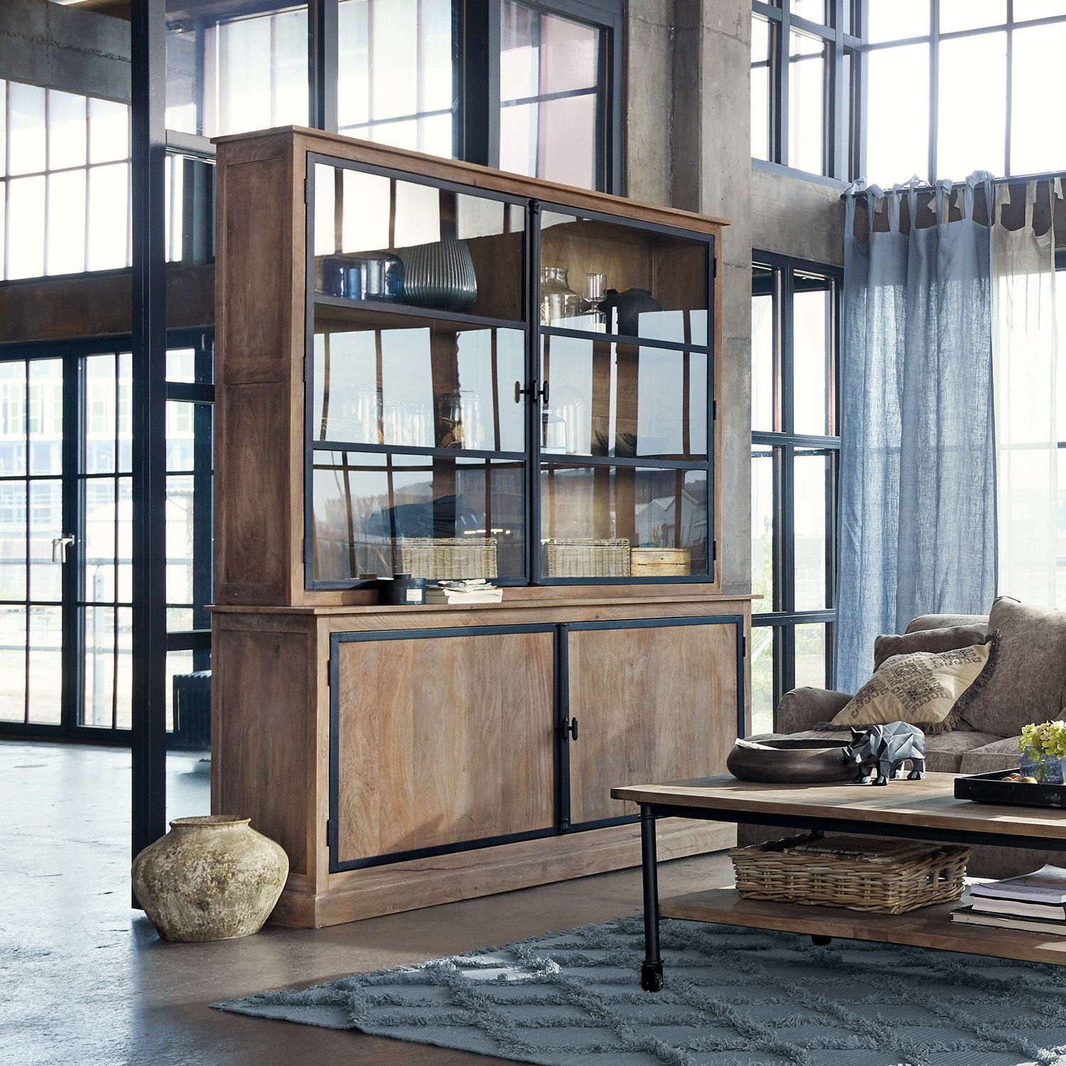 Es gibt Möbelstücke, die uns schon auf den ersten Blick mit ihrer perfekten Balance zwischen praktischer Funktionalität und dekorativem Auftreten beeindrucken. Wie dieser Schrank, hinter dem sich eigentlich ein raffiniertes Möbel-Duo verbirgt: eine Kommode und ein etwas schmaler gehaltener Vitrinen-Aufsatz. Vitrinen gibt es, seit die Menschen das Bedürfnis haben, besonders schöne oder wertvolle Dinge zur Schau zu stellen. Also schon seit Urzeiten. Und auch heute bereitet es uns immer wieder großes Vergnügen, kostbare Sammlerobjekte und geliebte Erbstücke, erlesenes Porzellan sowie schöne Gläser und Co in einem stilvollen Rahmen zu präsentieren. Deshalb bietet der Schrank auf den drei geräumigen Holzböden hinter den eisengefassten Glastüren Ihren wertvollen oder auch nur wertgeschätzten Lieblingsstücken die perfekte Bühne. Weil es in jedem Haushalt aber auch optisch weniger attraktive Dinge gibt, die man nichtsdestotrotz gerne schnell zur Hand hat, verfügt der Schrank auch über ausreichend Stauraum hinter den zwei geschlossenen Türen. Für Ihre Spielesammlung, für Tischwäsche, Kerzen und viele andere Accessoires. Noch ein Tipp: Natürlich wird dieser sorgfältig von Hand gefertigte Schrank gerne das Highlight im Wohnraum bilden, er kann aber auch im Speisezimmer oder in der geräumigen Landhausküche seinen neuen Stammplatz finden.