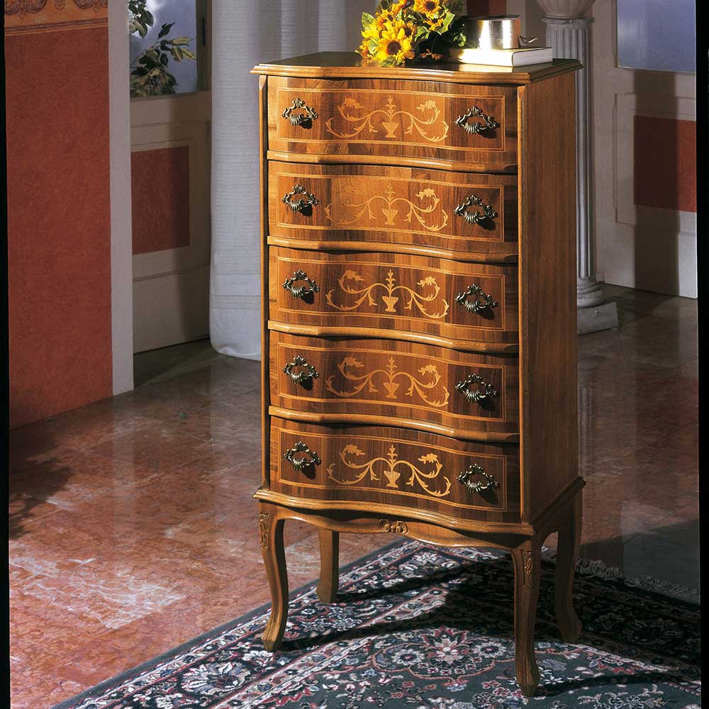 Schubladenkommode im Barock Design Nussbaum furniert