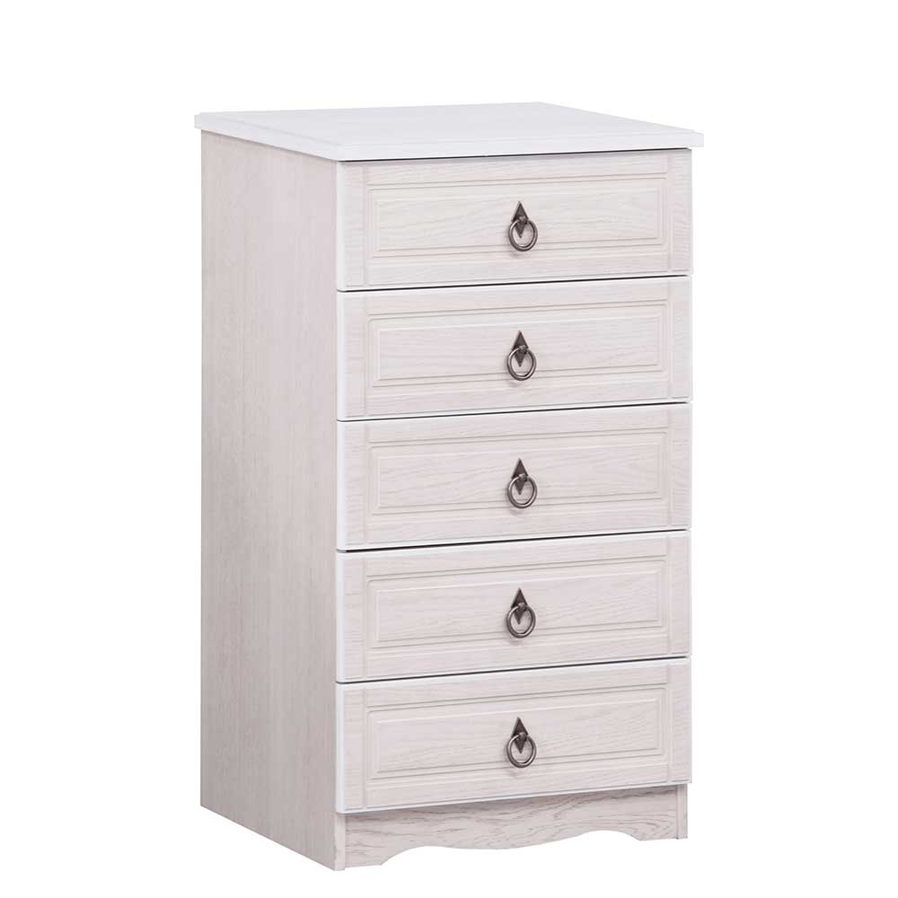 – Kommode Weiß – Flurkommode Spanplatte und MDF – Schubladenkommode Landhausstil – Schlafzimmer kommode Breite: 55 – Wäschekommode Höhe: 100 – Schubkastenkommode Tiefe: 50 – Schlafzimmerkommode Mit fünf Schubladen und mit Metallauszug – Flur kommoden Ohne Beleuchtung – Kommode für schlafzimmer Zerlegt, zum leichten Selbstaufbau (Montageanleitung liegt bei) – Herrenkommode Sockelgestell – Garderobenkommode Furniert und Lackiert – Kommode für garderobe Metallgriffen – Schlafzimmerkomode Rechteckige Form
