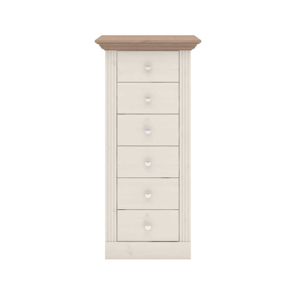 Schubladenkommode in White Wash Braun Kiefer massiv
