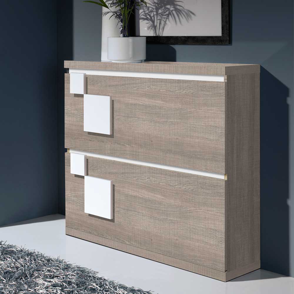 Schuhkommode in Weiß Hochglanz und Eiche Sonoma 2...