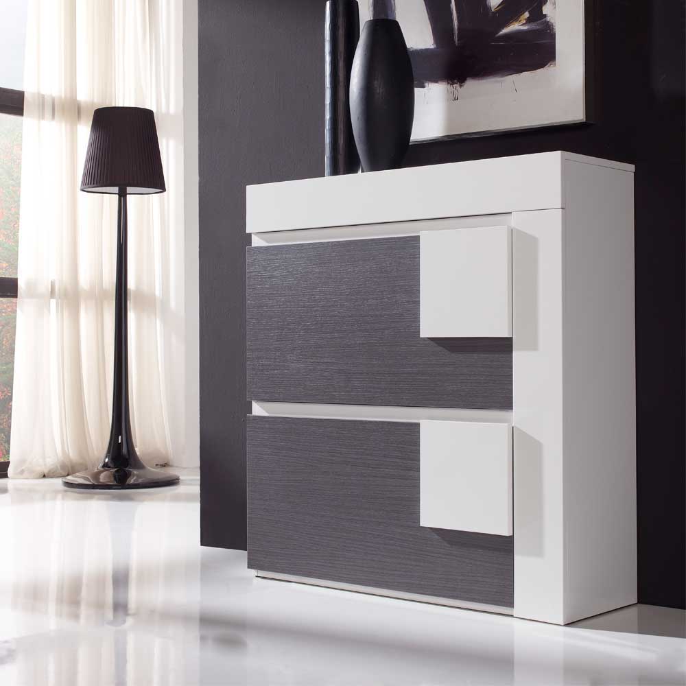 Schuhkommode in Weiß Hochglanz und Grau 90 cm breit