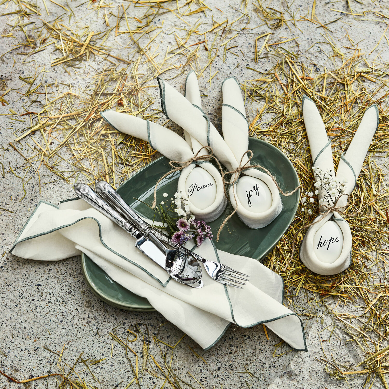 Auch in modernen Zeiten lassen sich Stoffservietten durch nichts ersetzen. Sind sie doch zeitlose Klassiker, die jede Tafel mit viel Stil und Noblesse aufwerten. Äußerst robust, langlebig und waschbar sind sie zudem eine nachhaltige Alternative gegenüber Papierservietten. Dieses 4er Set aus reinem Leinengewebe überzeugt mit einem ganz eigenen Charme. Denn sie besitzen nicht nur die typische charaktervolle Struktur, sie sind auch mit einem feinen, farbig umstickten Rand veredelt. So erfüllen die Stoffservietten nicht nur ihren Zweck, sondern sorgen auf der Gästetafel für eine persönliche Note.