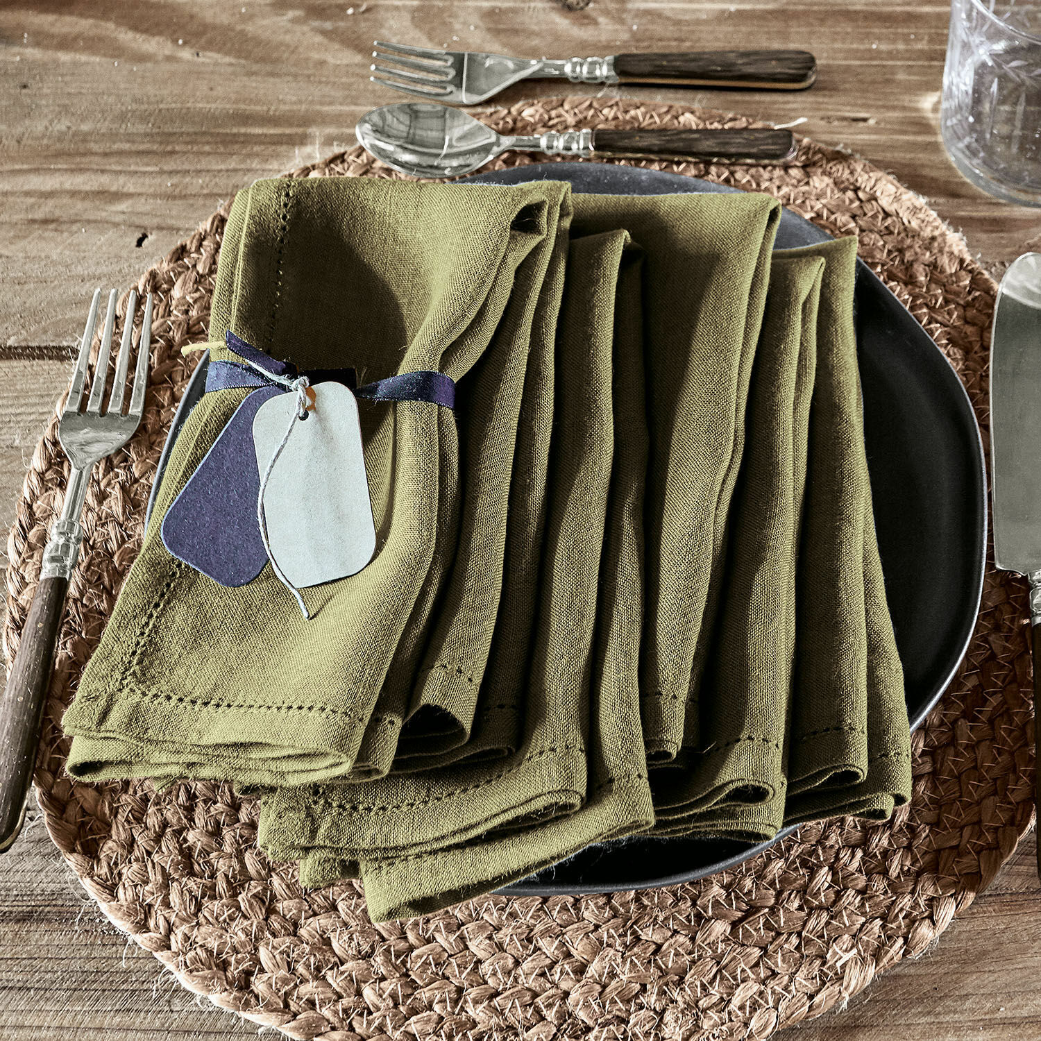 Dieses elegante Set ist die perfekte Wahl zum Weihnachtsdinner, doch auch zu jedem anderen Essen mit Stil mit Freunden und Familie. Die wertvollen Designs bestehen aus reinem Leinen und sind von einer sehr hübschen Lochstickerei gesäumt. Sie wirken insgesamt sehr klassisch und zieren jede Tafel perfekt. Sie sind waschbar, immer wieder verwendbar und dadurch auch nachhaltig in der Nutzung, da so kein Abfall entsteht. Das freut auch die Natur, und so lässt sich das Festessen gleich noch mehr genießen. Schmücken Sie Ihre Tafel mit solch ästhetischen Accessoires, an denen Sie sich das ganze Jahr über freuen können, und genießen Sie gesellige Einladungen im Kreise lieber Menschen an einem geschmackvoll gedeckten Tisch gleich noch ein Stückchen mehr. Ob große Einladung oder Frühstück zu zweit, diese klassischen Servietten sind immer ein guter Begleiter zu jeder Mahlzeit.