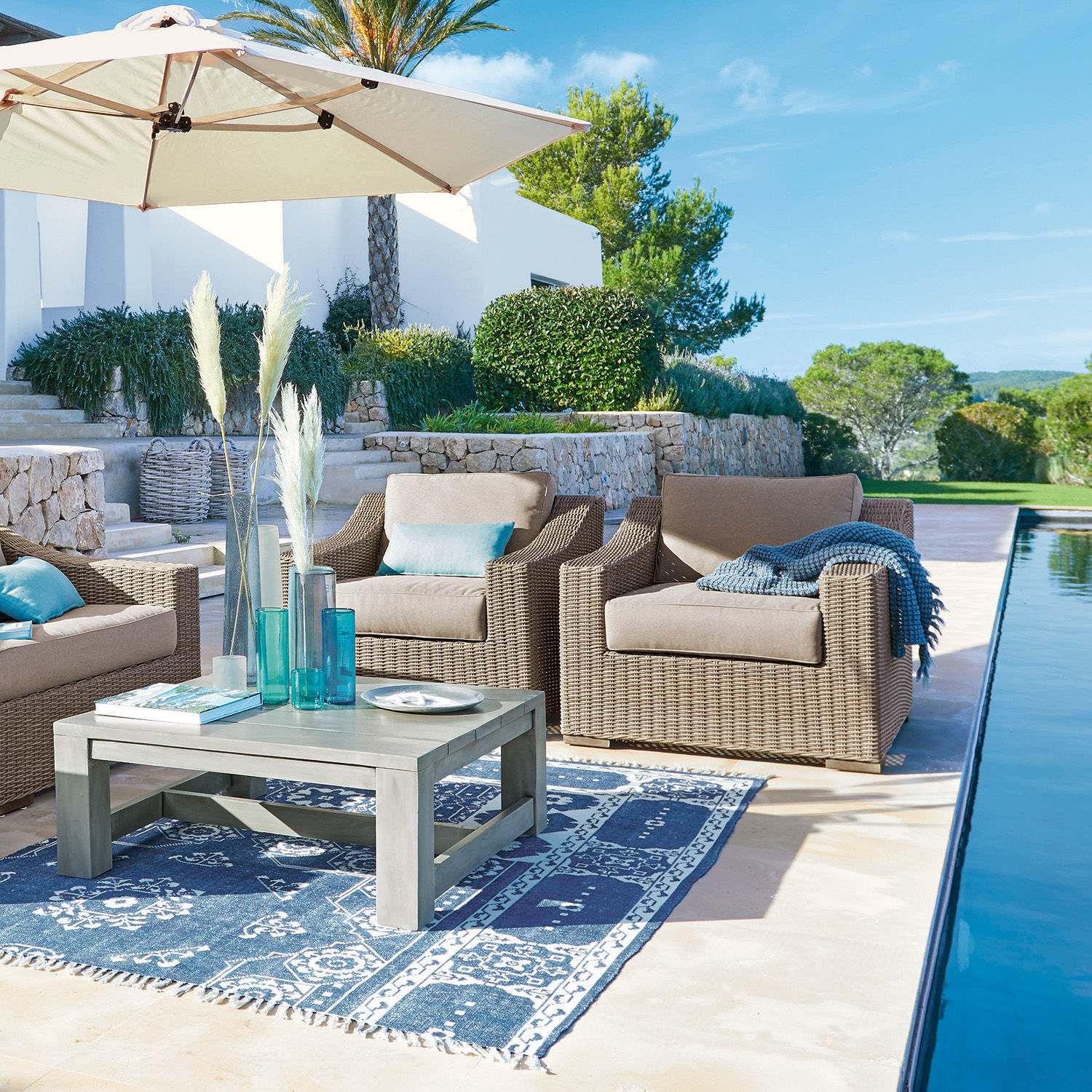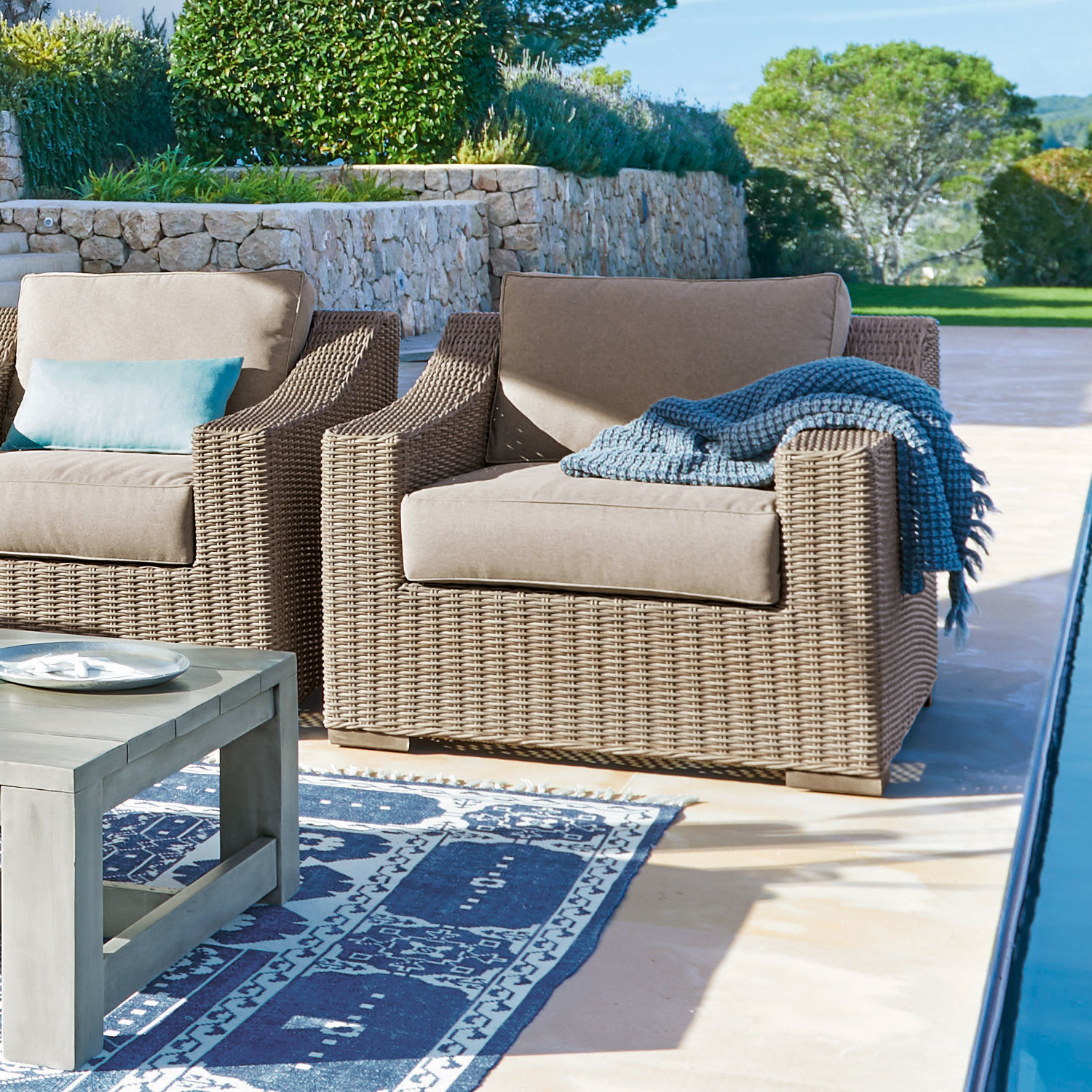 Dieser Sessel ist eine wunderbare Bereicherung für Haus, Terrasse und Garten. Das zurückhaltende und doch stilvolle Design verleiht jeder Umgebung einen Hauch rustikaler Eleganz. Der natürliche Look lässt sich nahtlos in die unterschiedlichsten Wohnkonzepte integrieren. Der Sessel ist wetterfest, leicht zu reinigen, äußerst strapazierfähig und perfekt für den täglichen Gebrauch. Das Aluminiumgestell macht den Sessel standfest und langlebig. Das Gestell ist wiederum mit handgeflochtenem Polyrattan überzogen, das echtem Rattan sehr ähnlich sieht. Die bequemen, formstabil gepolsterten Sitz- und Rückenkissen sind ebenfalls wetterfest und verfügen über abnehmbare Bezüge. Im Winter können Sie Ihren neuen Lieblingssessel mit einer separat erhältlichen Husse schützen: 18191.