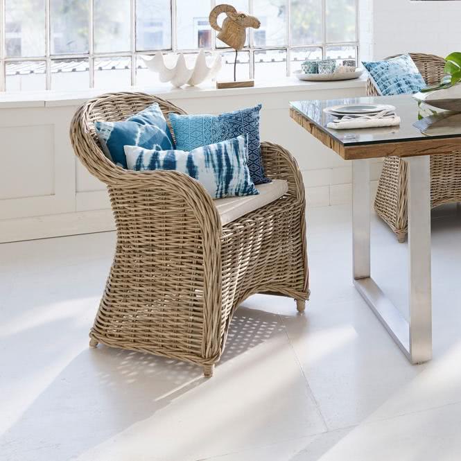 Die zeitlose Linienführung macht den Sessel zum Design-Klassiker! Sowohl das stabile Grundgestell als auch das Geflecht sind aus dem Naturmaterial Rattan gefertigt. […]