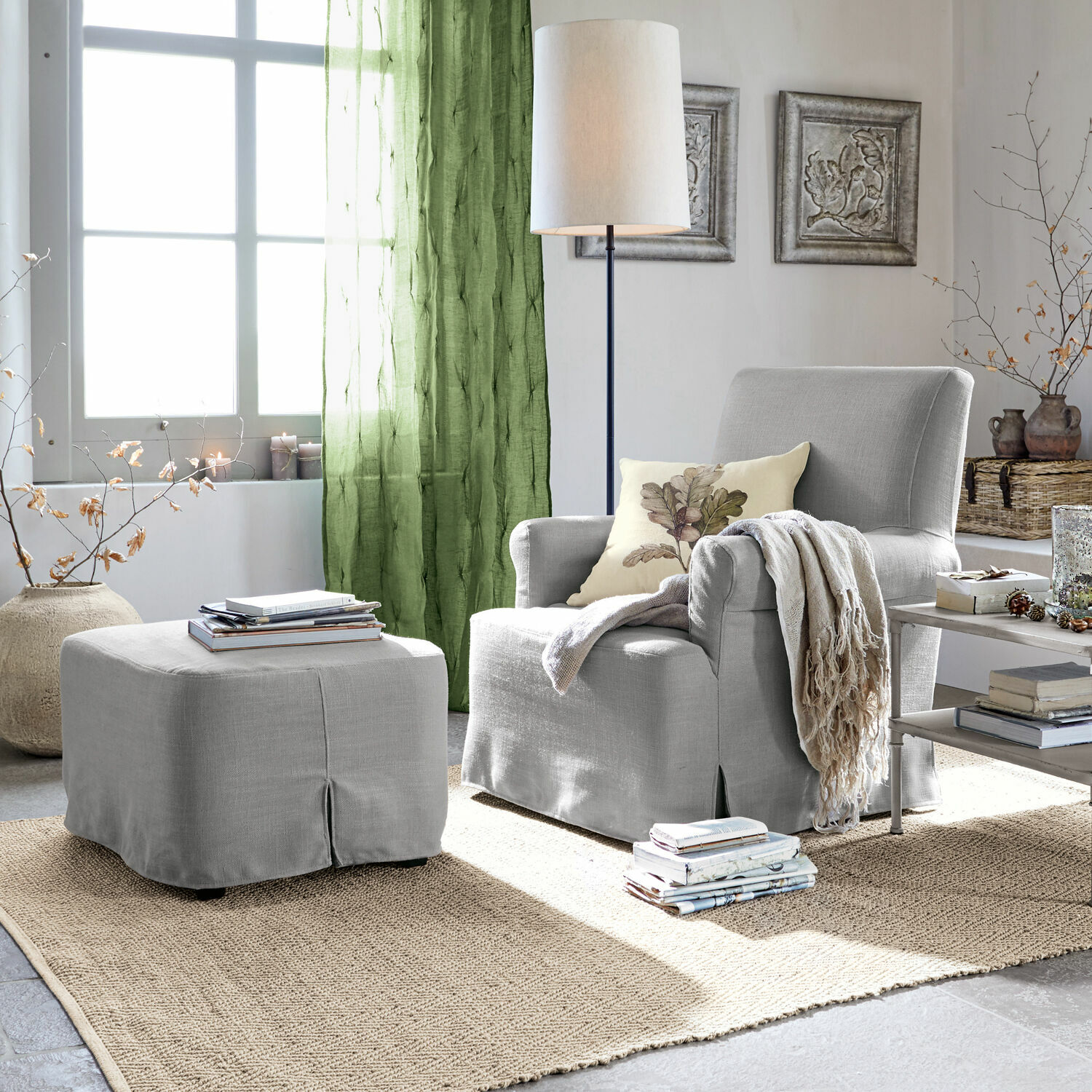 Eine zugleich bequeme wie stilvolle Kombination: Der schicke Sessel und sein kleiner Kompagnon laden Sie ein zu beschwingten Runden im Kreis von Freunden und Bekannten oder entspannenden Stunden im Sonnenschein mit einem guten Buch oder Kopfhörern zu Klängen, die Sie in andere Sphären tragen. Sinken lassen, zurücklehnen und die Beine hochlegen. Durch seine freundliche Optik und sein luftiges Design versprüht das Duo das schöne Gefühl unbeschwerter Leichtigkeit. Die Polsterung könnte komfortabler und angenehmer kaum sein – und die Hussen können Sie ganz einfach abnehmen und bei Bedarf waschen. Mit seinem Leinenanteil sorgt der Bezug noch dazu für eine wunderschön, natürliche Optik. Ein rundum perfektes Ensemble!