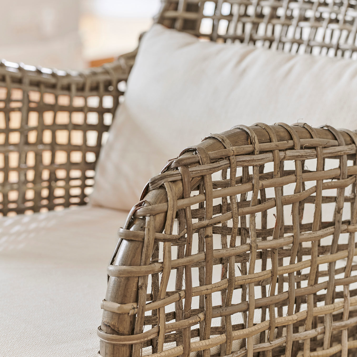 Ein wunderbar elegantes, zeitloses und naturnahes Design. Der formschöne, luxuriöse Sessel weist ein rustikales Rattan-Geflecht und Polsterbezüge aus reiner Baumwolle auf. Die Bezüge sind abnehmbar und waschbar, sodass die Polster immer blütenrein sind. Der klassische Look schmeichelt jedem Ambiente, und der edle, hochwertige Sessel ist sehr bequem. So können Sie ihre wohlverdiente Freizeit bestens darin genießen – vielleicht mit einem kühlen Getränk oder einem guten Buch in der Hand. Im Esszimmer oder überdacht auf dem Balkon schaffen Sie sich hiermit einen neuen Lieblingsplatz, der in jeder Saison Freude macht. Der formschöne Sessel eignet sich gut als Solitär, doch auch an einem Tisch platziert versprüht er seinen Charme. Sie müssen sich nur noch darauf niederlassen, die Beine hochlegen und Entspannung pur genießen.