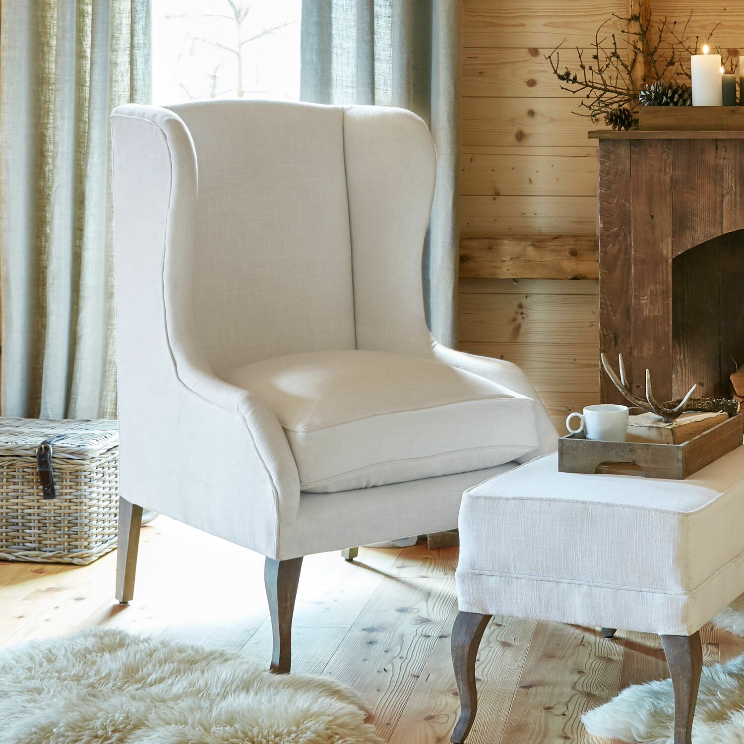 Sie möchten nach einem anspruchsvollen Arbeitstag am Abend stilvoll entspannen? In einem Sessel, der Ruhe und Geborgenheit ausstrahlt, gemütlich gepolstert ist und optisch das gewisse Etwas hat? Dann ist ein Ohrensessel genau richtig für Sie. Diese Möbel-Klassiker gehören seit Jahrhunderten zum festen Bestandteil nobler Landhäuser, in denen in der Winterzeit zwar lustige Holzfeuer prasselten, die Türen und Fenster aber leider nie dicht schlossen. Deshalb hatten die Sessel gerne hohe Rückenlehnen und die berühmten Ohren, die vor kalter Zugluft schützten und an die man seinen Kopf so gemütlich anlehnen konnte. Sicherlich ist Ihr Wohnraum zu jeder Jahreszeit angenehm temperiert und doch werden auch Sie den luxuriösen Komfort des Sessels zu schätzen wissen. Neben der hohen Lehne verwöhnt er Sie auch mit einem kuschelweichen Bezugsstoff aus reiner Baumwolle, unter dem sich eine hochwertige Polsterung befindet, die von Fachleuten als mittelhart bezeichnet wird, was aber nur ein anderes Wort für optimal bequem ist. Das stabile Gestell aus edlem Mangoholz sorgt im Verborgenen für die ausgezeichnete Belastbarkeit und lange Lebensdauer des Sessels. Den Füßen aus Mangoholz hat der Möbelschreiner den eleganten Schwung gegeben, wie ihn schon die historischen Vorbilder damals in den Salons zeigten. Unser Tipp: Noch stilechter – und komfortabler – werden die Abendstunden in dem Sessel, wenn Ihre Füße auf dem passenden Hocker (19744) ruhen.