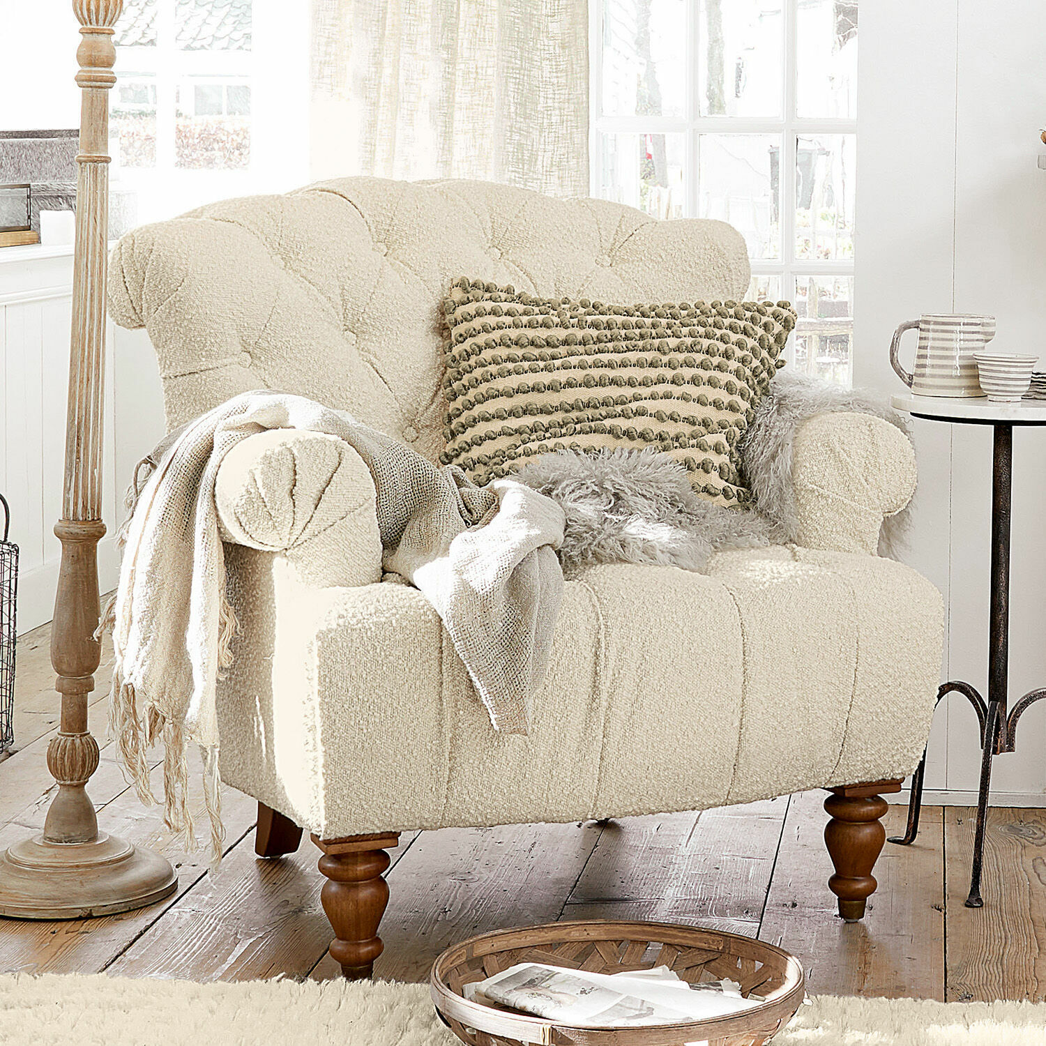 Der Sessel im Chesterfield-Stil hat es: das Potenzial zum Lieblingsplatz! Bezogen mit einem weichen, hochwertigen Leinenstoff, besticht der bequeme Clubsessel mit der klassischen Knopf-Steppung und einem stabilen Gestell aus massivem Kiefernholz. Die vorderen Beine sind sanft gedrechselt und handbearbeitet. Und auch das sieht man dem Sessel bereits an: Der Sitzkomfort ist hoch und eine feste, hochwertige Schaumstoffpolsterung sorgt dafür, dass das auch so bleibt.