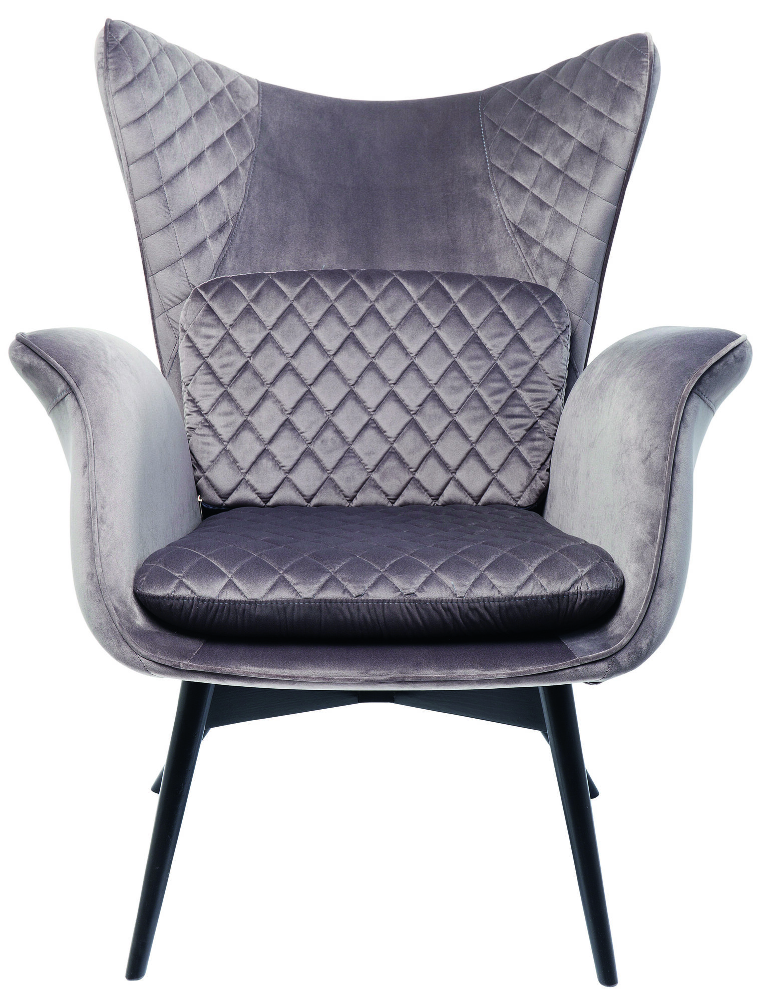Eine coole Interpretation des klassischen Ohrensessels mit schwungvollen Armlehnen, der Rautensteppung und dem schlichten Gestell im Skandi-Style. Dieser Sessel bereicht mit einem Hauch Glamour jedes Wohnzimmer. Besonders lässig macht ihn die trendige Wohnfarbe Silbergrau, die sich gut mit anderen Farben verträgt. In weiteren Farben erhältlich. Material: (Gestell: Buche Massivholz naturbelassen, Stahl natur, Bezug: Polyester (Samtoptik), Fuß/Füße: Buche Massivholz lackiert, Polsterung: Polyurethan)