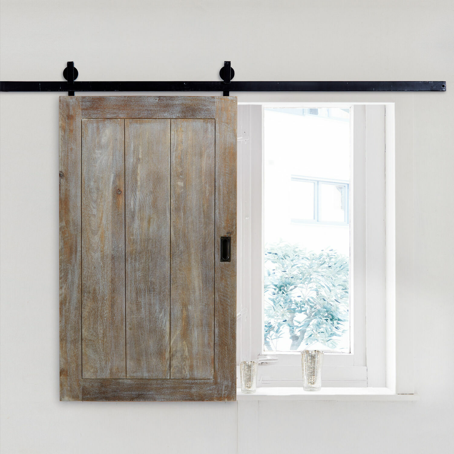 Ein heller, sonnendurchfluteter Raum ist eine Wohltat für alle Sinne. Wenn die Sonne aber zu intensiv wird, ist es mit dem Vergnügen schnell vorbei. In solchen Situationen hat dann ein Shutter seinen großen Auftritt. Denn jetzt darf er aus dem Schattendasein neben dem Fenster treten und sich davorschieben lassen. Und im Nu herrscht angenehm gedämpftes Licht im Raum. Aber auch wenn es Abend und draußen dunkel wird und Sie nicht allen vorbeigehenden Passanten den ungehinderten Blick in Ihre Privaträume gewähren wollen, darf der Shutter in Aktion bzw. vor die Fensterscheibe treten. Und so effektiv seine Funktion, so denkbar komfortabel ist das Handling, denn bei diesem System wird eine Holzplatte auf einer stabilen Laufschiene aus Eisen bewegt – ganz einfach und ohne Kraftaufwand. Ein System, das an funktionale Möbel im Industrial-Style erinnert, während die Holzfläche mit ihrer edlen Optik begeistert. Sie wurde aus massivem Mangoholz gefertigt, das für seine ausdrucksstarke Maserung bekannt ist. Für den Einsatz als Shutter wurde das Mangoholz versiegelt, um es vor Nässe und Co zu schützen, es darf sich aber trotzdem in seiner natürlichen Schönheit zeigen.