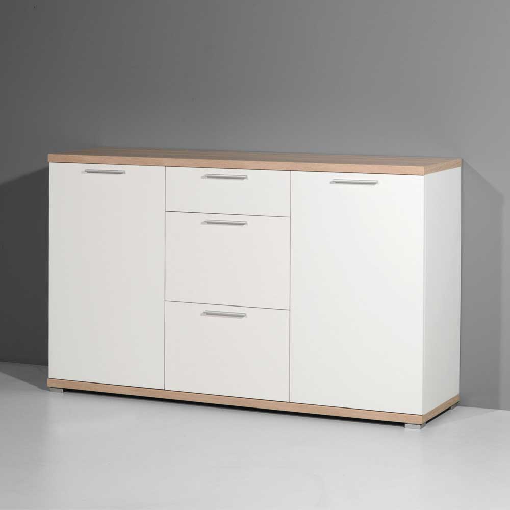 – Sideboard Weiß und Eichefarben – Wohnzimmerschrank Spanplatte – Kommode Modern – Sidebord Breite: 144 – Küchenkommode Höhe: 88 – Wohnzimmer schrank Tiefe: 40 – Wohnzimmer kommode Mit drei Schubladen und mit Metallauszug – Große kommode Schrank-Tür: mit Drehtüren – Esszimmer kommode 2-türig, Innenaufteilung: mit Einlegeböden – Wohnzimmerkommode Ohne Beleuchtung – Esszimmerkommode Zerlegt, zum leichten Selbstaufbau (Montageanleitung liegt bei) – Küchensideboard Deutsche Produktion – Schubladensideboard Touchwood (fühlbare Holzstruktur) – Esszimmersideboard Metallgriffen – Eichenkommode Rechteckige FormInformationen zur Lieferung:Die Zustellung dieses Produktes erfolgt per Spedition. Sie werden vor der Auslieferung durch die ausliefernde Spedition kontaktiert.Terminvereinbarung: Sie werden frühzeitig (ein paar Tage im Voraus) durch die ausliefernde Spedition kontaktiert und Ihnen der Auslieferzeitpunkt mitgeteilt. Die Kontaktaufnahme erfolgt per Telefon. Bei telefonischer Nichterreichbarkeit werden Sie per Postkarte über das Auslieferdatum informiert.Die Lieferung erfolgt aus Kostengründen Frei Bordsteinkante (bis zur ersten verschlossenen Tür). Für den weiteren Transport der Ware sind Sie eigenverantwortlich.Die Auslieferung erfolgt von Montags bis Freitags. Eine Zustellung an Sonn- und Feiertagen ist nicht möglich.