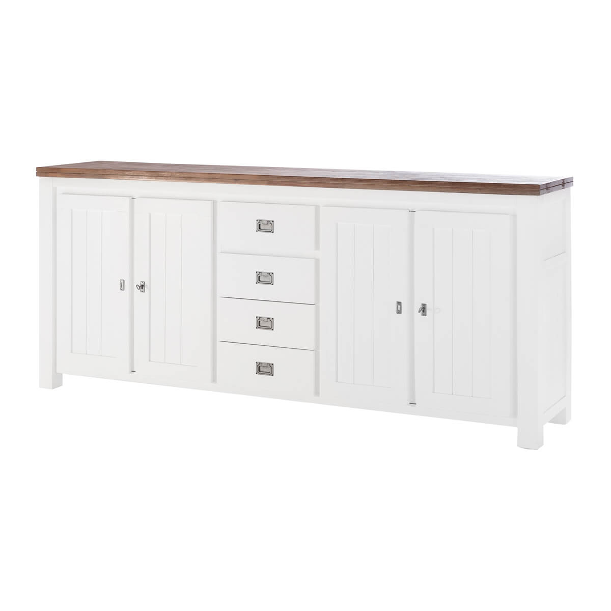 Sideboard 210cm breit im Landhausstil aus Akazie Massivholz in weiß / braun.