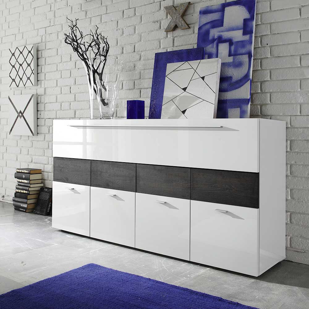 Sideboard in Weiß Hochglanz Eiche Wengefarben 160...