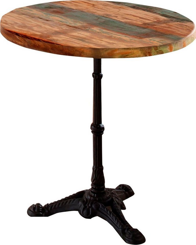Perfekt für außergewöhnliche Einrichtungsideen: der moderne Bistrotisch aus dem SIT-Sortiment mit aufmerksamkeitsstarken Details im Vintage-Design. Zu diesen zählt die Tischplatte in Rundform. Sie wird in einer robusten Qualität aus lackiertem Altholz gefertigt, sodass mit jedem Möbel ein Unikat entsteht. Ein weiteres optisches Highlight ist das im Retrostil verzierte Gestell aus Gusseisen. Es verleiht dem hochwertig verarbeiteten Tisch einen festen Stand und wertet die Optik stilvoll auf. Stelle ihn wahlweise im Essbereich oder im Wintergarten auf und ergänze ihn durch passende Stühle. Der moderne Bistrotisch von SIT im angesagten Vintage-Style ist eine Bereicherung für deine heimischen vier Wände.