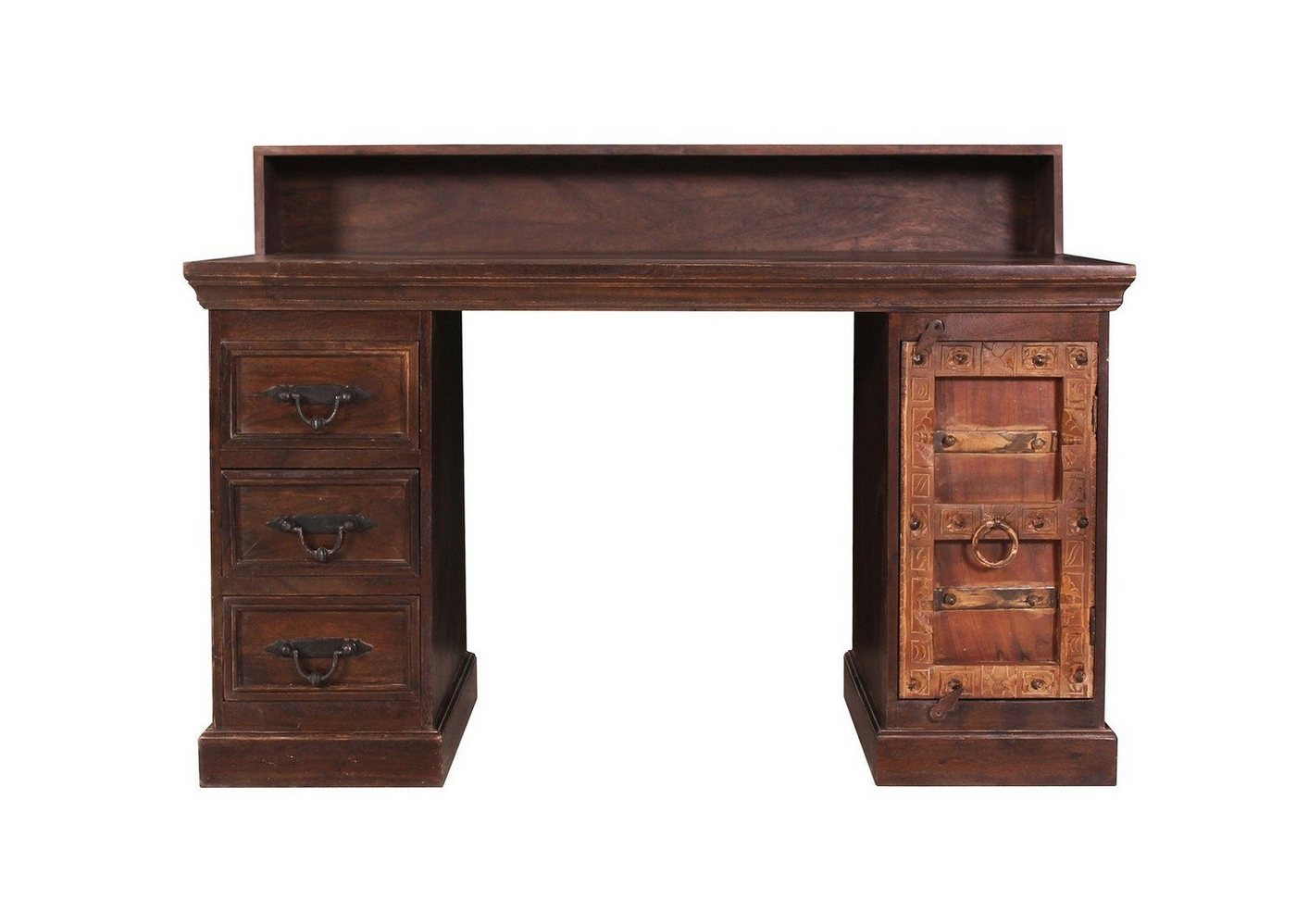 Sit Möbel Almirah Schreibtisch L =, 132 x B =, 65 x H =, 90 cm braunKurzbeschreibungMit diesem Schreibtisch aus recyceltem Altholz leisten Sie einen aktiven Beitrag zum Umweltschutz und werten Ihren Arbeitsplatz auf. Mit 3 Schubladen und Stauraum hinter einer Tür bietet er viel Platz für Ihre Unterlagen. Der Schreibtisch im dunklen Kolonialstil mit aufwändigen Schnitzereien verziert ist ein absoluten Hingucker, um den Ihre Freunde sie beneiden werden.. 3 Schubladen, 1 Tür. 1 loser Boden hinter der Tür, Höhe der Schreibfläche 73 cm Aktuelle Trends, hervorragende Einrichtungs-Ideen, schöne Möbel zu fairen Preisen. SIT-MÖBEL begann seine Erfolgsstory im Jahre 1986 und zählt heute zu einer der beliebtesten Firmen im Bereich Möbel. Das stets aktuelle und zeitgemäße Sortiment umfasst unzählige Produkte. Bestuhlungen für Restaurant, Kneipen und Bars, trendige Produkte für Ersteinrichter, Landhausmöbel in heimischen Hölzern und auch ausgefallene Spezialthemen finden Sie von SIT-MÖBEL bei uns. Freuen Sie sich auf ein breites Spektrum, immer nach dem Motto -Schöne Möbel preiswert-. Entdecken Sie eine inspirierende Raumgestaltung und eine tolle Vielfalt an massiven und teilmassiven Möbeln. Erschaffen Sie sich einen völlig neuen Einrichtungsstil mit SIT-Möbel.Zusammenfassung1x Sit Möbel Almirah Schreibtisch L =, 132 x B =, 65 x H =, 90 cm braunmit Metallgriffenviel Stauraumstabile Ausführungmit modernen und antiken Möbelstücken kombinierbarSchreibtisch aus der Serie ALMIRAHMaterialRecyceltes Altholz
