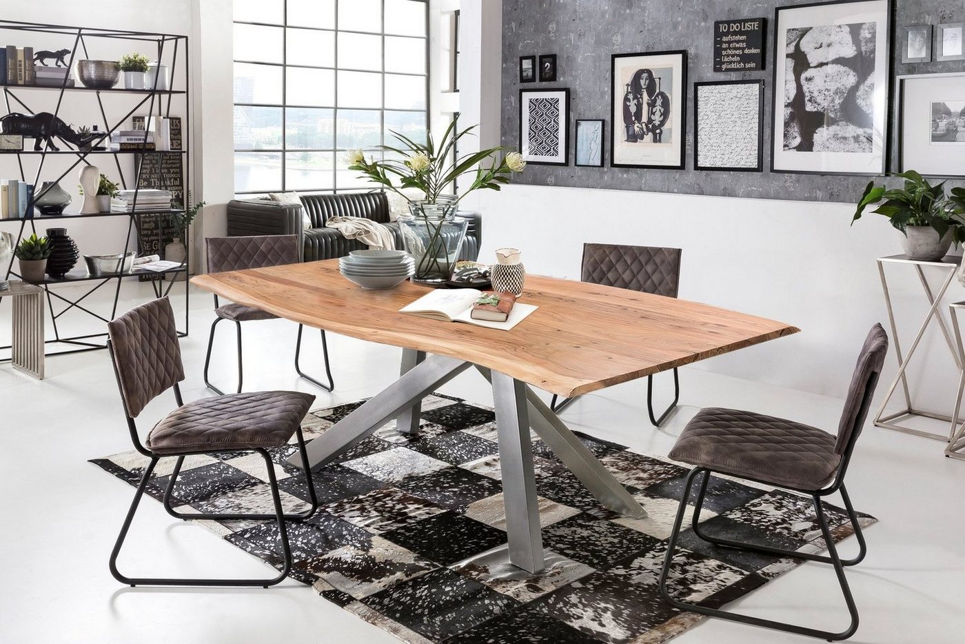 Sit Möbel Tables &, Co Tisch 200×100 cm L =, 200 x B =, 100 x H =, 77 cm Platte natur, Gestell antiksilberKurzbeschreibung",",Hier sind Sie richtig, wenn Sie einen Tisch mit Charakter und Einzigartigkeit wollen. Dieser Esstisch wird so leicht nicht noch einmal zu finden sein. Die Massivholz Tischplatte wurde aus massiver Akazie mit Baumkante wie gewachsen gefertigt und ist so einzigartig wie die Natur eben auch. Zudem überzeugt die Platte in natur mit ihrer Stärke von 36 mm. Das moderne Metallgestell in antiksilber bietet einen schönen Kontrast zur Natur-Tischplatte, sorgt für den angenehmen Industrial Style und verbindet Wohnlichkeit mit Coolness. Ihr Essplatz wird somit zum Eye-Catcher und Treffpunkt, um schöne Stunden mit Familie und Freunden zu verbringen. Hier findet viel mehr statt als nur die täglichen Mahlzeiten. Hinweis: Die Tischplatte ist ein Naturprodukt. Es kann zu Astlöchern, Wuchsrissen und unterschiedlichen Farbschmückungen kommen, welche jedoch kein Reklamationsgrund sind, sondern die Echtheit des Holzes unterstreichen.",. Platte Akazie massiv, gebeizt, lackiert und gewachst, Gestell Metall antiksilber. Plattenstärke 36 mm, Rohre 6×6 cm Aktuelle Trends, hervorragende Einrichtungs-Ideen, schöne Möbel zu fairen Preisen. SIT-MÖBEL begann seine Erfolgsstory im Jahre 1986 und zählt heute zu einer der beliebtesten Firmen im Bereich Möbel. Das stets aktuelle und zeitgemäße Sortiment umfasst unzählige Produkte. Bestuhlungen für Restaurant, Kneipen und Bars, trendige Produkte für Ersteinrichter, Landhausmöbel in heimischen Hölzern und auch ausgefallene Spezialthemen finden Sie von SIT-MÖBEL bei uns. Freuen Sie sich auf ein breites Spektrum, immer nach dem Motto -Schöne Möbel preiswert-. Entdecken Sie eine inspirierende Raumgestaltung und eine tolle Vielfalt an massiven und teilmassiven Möbeln. Erschaffen Sie sich einen völlig neuen Einrichtungsstil mit SIT-Möbel.