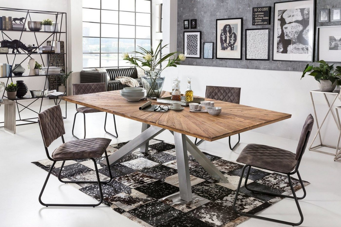 Sit Möbel Tables &, Co Tisch 240×100 cm L =, 240 x B =, 100 x H =, 77 cm Platte natur, Gestell antiksilberKurzbeschreibungHier sind Sie richtig, wenn Sie einen Tisch mit Charakter und Einzigartigkeit wollen. Dieser Esstisch wird so leicht nicht noch einmal zu finden sein. Die Massivholz Tischplatte wurde aus recyceltem Teak-Holz gefertigt und ist so einzigartig wie die Natur eben auch. Zudem überzeugt die wunderschön gemusterte Platte in natur mit ihrer Stärke von 50 mm. Das moderne Metallgestell in antiksilber bietet einen schönen Kontrast zur Natur-Tischplatte, sorgt für den angenehmen Industrial Style und verbindet Wohnlichkeit mit Coolness. Ihr Essplatz wird somit zum Eye-Catcher und Treffpunkt, um schöne Stunden mit Familie und Freunden zu verbringen. Hier findet viel mehr statt als nur die täglichen Mahlzeiten. Hinweis: Die Tischplatte ist ein Naturprodukt. Es kann zu Astlöchern, Wuchsrissen und unterschiedlichen Farbschmückungen kommen, welche jedoch kein Reklamationsgrund sind, sondern die Echtheit des Holzes unterstreichen.. Platte recyceltes Teak, Gestell antiksilber. Plattenstärke 50 mm Aktuelle Trends, hervorragende Einrichtungs-Ideen, schöne Möbel zu fairen Preisen. SIT-MÖBEL begann seine Erfolgsstory im Jahre 1986 und zählt heute zu einer der beliebtesten Firmen im Bereich Möbel. Das stets aktuelle und zeitgemäße Sortiment umfasst unzählige Produkte. Bestuhlungen für Restaurant, Kneipen und Bars, trendige Produkte für Ersteinrichter, Landhausmöbel in heimischen Hölzern und auch ausgefallene Spezialthemen finden Sie von SIT-MÖBEL bei uns. Freuen Sie sich auf ein breites Spektrum, immer nach dem Motto -Schöne Möbel preiswert-. Entdecken Sie eine inspirierende Raumgestaltung und eine tolle Vielfalt an massiven und teilmassiven Möbeln. Erschaffen Sie sich einen völlig neuen Einrichtungsstil mit SIT-Möbel.Zusammenfassung
