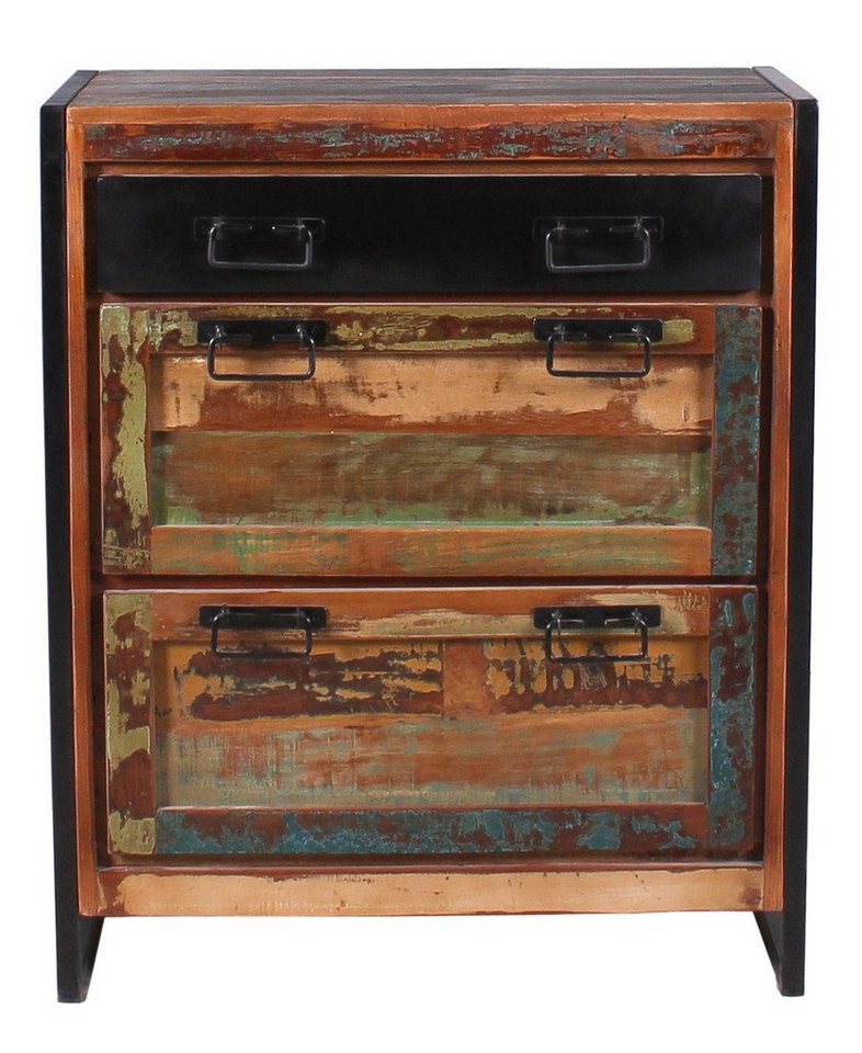 Sit Möbel Bali Schuhschrank L =, 80 x B =, 40 x H =, 96 cm bunt mit antikschwarzKurzbeschreibungDieser Schuhschrank, angefertigt aus altem, massivem Holz von Fischerbooten, sorgt für Ordnung im Leben Ihrer Schuhe. Hinter zwei mit Metallgriffen ausgestatteten Klappen verbirgt sich ausreichend Platz für Sportschuhe, Sandalen, Slipper, Sneaker, Kinderschuhe usw. Der Schubkasten bietet noch mal zusätzliche Fläche für Schuhanzieher, Schnürsenkel, Schuhpflege usw. Das schwarze Gestell, ebenfalls aus Metall, wurde bewusst auf alt getrimmt, um das beliebte factory Design zu kreieren Ob als Einzelschrank oder kombiniert mit weiteren Garderobenmöbel, dieses Möbelstück ist vielseitig integrierbar. Auch mit einem darüber angebrachten Spiegel oder immer wieder neu dekoriert ist der Schuhkipper in Flur und Diele eine Augenweide.. 1 Schublade, 2 Klappen. für ca. 12 Paar Schuhe Aktuelle Trends, hervorragende Einrichtungs-Ideen, schöne Möbel zu fairen Preisen. SIT-MÖBEL begann seine Erfolgsstory im Jahre 1986 und zählt heute zu einer der beliebtesten Firmen im Bereich Möbel. Das stets aktuelle und zeitgemäße Sortiment umfasst unzählige Produkte. Bestuhlungen für Restaurant, Kneipen und Bars, trendige Produkte für Ersteinrichter, Landhausmöbel in heimischen Hölzern und auch ausgefallene Spezialthemen finden Sie von SIT-MÖBEL bei uns. Freuen Sie sich auf ein breites Spektrum, immer nach dem Motto -Schöne Möbel preiswert-. Entdecken Sie eine inspirierende Raumgestaltung und eine tolle Vielfalt an massiven und teilmassiven Möbeln. Erschaffen Sie sich einen völlig neuen Einrichtungsstil mit SIT-Möbel.Zusammenfassung1x Sit Möbel Bali Schuhschrank L =, 80 x B =, 40 x H =, 96 cm bunt mit antikschwarzim modernen, rustikalen Designaus bunt lackiertem Altholz