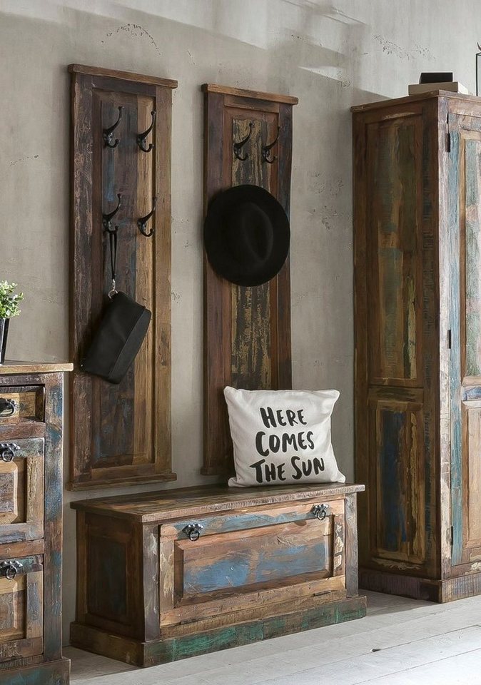 Produktdetails Produktdetails , In folgenden Farben erhältlich: Korpus/Front: bunt, Farbe Griffe: schwarz, Details zur Ausstattung: Laufleisten der Schubkästen aus Holz, Metallgriffe, Griffe aus Metall, FSC®-zertifiziert, Set bestehend aus: Paneel 2, Schuhschrank 1, Paneel: 4 Haken, Maße (B/T/H): 35/8/110 cm cm, Schuhschrank: 1 Klappe, 1 fester Boden, Platz für ca. 6 Paar Schuhe, Rückwand gänzlich geschlossen, Maße (B/T/H): 85/40/45 cm cm, , | Farbe Farbe , bunt, | Maßangaben Hinweis Maßangaben , Alle Angaben sind ca.-Maße., | Wissenswertes Wissenswertes , Material: Korpus: Massivholz, Front: Massivholz, Griffe aus Metall, Informationen zu Lieferumfang und Montage: Montiert, FSC®-zertifiziert: Das Label des FSC® weist nach, dass Sie mit dem Kauf dieser Produkte vorbildlich Waldwirtschaft – nach den strengen ökologischen, sozialen und wirtschaftlichen Standards des Forest Stewardship Council® – fördern und die Waldressourcen schonen., Pflegehinweise: Pflegehinweise für naturbelassene/gelackte Möbel aus Naturholz: Mit einem mäßig feuchten Tuch säubern. Keine Lösungsmittelhaltige Reinigungsmittel oder Politur verwenden. , , |