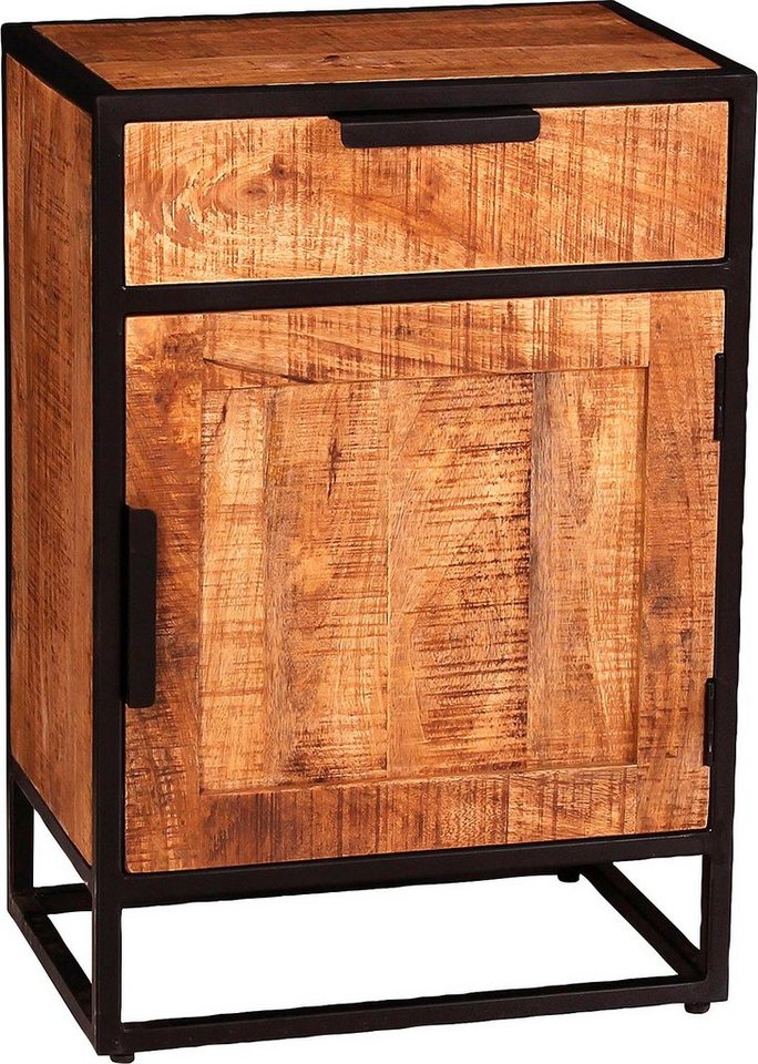 Bietet kompakt und stilvoll Stauraum: Die Kommode von SIT mit sicht- und fühlbarer Holzstruktur. Sie begeistert mit einem Rahmen und Design-Gestell aus Metall und zeichnet sich durch eine attraktive Holzoptik aus. Mit ihrem modernen Industrial-Look lenkt die Anrichte sämtliche Blicke auf sich. Da sie nicht viel Stellfläche benötigt, kannst du sie auch für kleine Räume nutzen. Auf dem Einlegeboden hinter der Tür und in der Schublade verbirgt der Schrank reichlich Stauraum, – ob für Textilien, Bücher oder Vasen. Als Material wird massives Mangoholz eingesetzt. Harmoniert mit verschiedensten Einrichtungskonzepten: die Kommode von SIT mit sicht- und fühlbarer Holzstruktur.