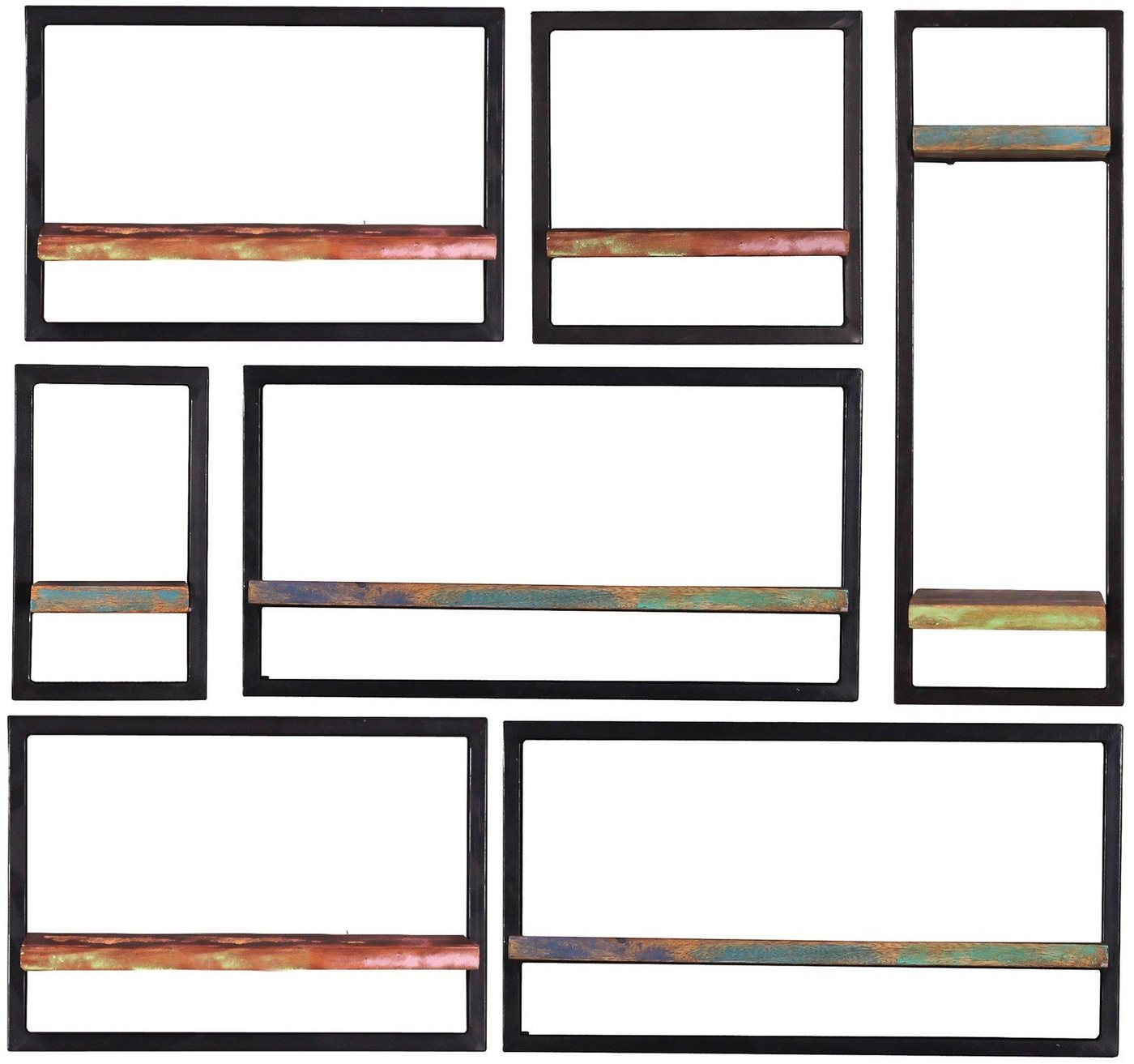 Sit Möbel Riverboat Wandregal-Set, 7-teilig L =, 120 x B =, 25 x H =, 115 cm bunt, schwarzKurzbeschreibungDieses Set aus 7 Wandregalen mit bunt lackiertem, auf alt getrimmten recyceltem Holz und ebenfalls auf antik getrimmten Metallrahmen können Sie ganz individuell gestaltet aufhängen und somit Ihrer Kreativität freien Lauf lassen. Natürlich können Sie die Regale auch einzeln in verschiedenen Räumen verwenden, die Nutzung ist also äußerst vielseitig.. 6 niedrige Wandregale in 3 Breiten und 1 hohes Wandregal. Maße der Einzelregale: 2 x 50x25x35 cm, 2 x 65x25x35 cm, 1 x 35x25x35 cm, 1 x 20x25x35 cm, 1 x 25x25x75 cm Aktuelle Trends, hervorragende Einrichtungs-Ideen, schöne Möbel zu fairen Preisen. SIT-MÖBEL begann seine Erfolgsstory im Jahre 1986 und zählt heute zu einer der beliebtesten Firmen im Bereich Möbel. Das stets aktuelle und zeitgemäße Sortiment umfasst unzählige Produkte. Bestuhlungen für Restaurant, Kneipen und Bars, trendige Produkte für Ersteinrichter, Landhausmöbel in heimischen Hölzern und auch ausgefallene Spezialthemen finden Sie von SIT-MÖBEL bei uns. Freuen Sie sich auf ein breites Spektrum, immer nach dem Motto -Schöne Möbel preiswert-. Entdecken Sie eine inspirierende Raumgestaltung und eine tolle Vielfalt an massiven und teilmassiven Möbeln. Erschaffen Sie sich einen völlig neuen Einrichtungsstil mit SIT-Möbel.Zusammenfassung1x Sit Möbel Riverboat Wandregal-Set, 7-teilig L =, 120 x B =, 25 x H =, 115 cm bunt, schwarzWandregale im angesagten Shabby Chictoller Materialmix aus Altholz und Altmetallvielseitiges Set aus unterschiedlichen Wandregalenindividuell kombinierbarWandregal Set aus der Serie RIVERBOATMaterial